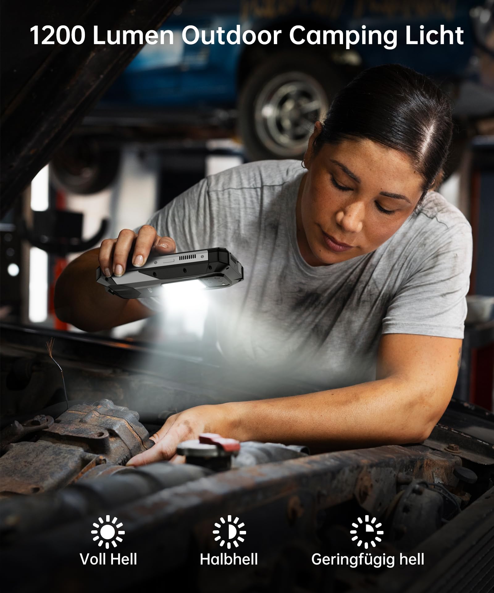 【1200LM Powerful Camping Light】5G Tank 3 Pro outdoor phone is equipped with a 1200LM camping light, which can illuminate a larger area and provide a reliable light source for your outdoor activities. With five different modes (including SOS, explosion flash, some bright, full light, and half light); Not only that, Tank 3 Pro Android 14 smartphone adds warning signal lights for emergency use, making your outdoor activities safer and more convenient.