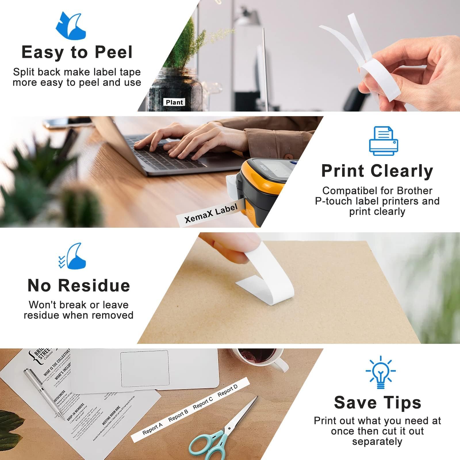 8x XemaX label tape Compatible for Brother P-touch tapes 9mm TZe-221 TZ-221 font tapes Black on white label cassette for Brother P-Touch PT-1010 E110 H100R H110 H101C H108 E100 H100LB
