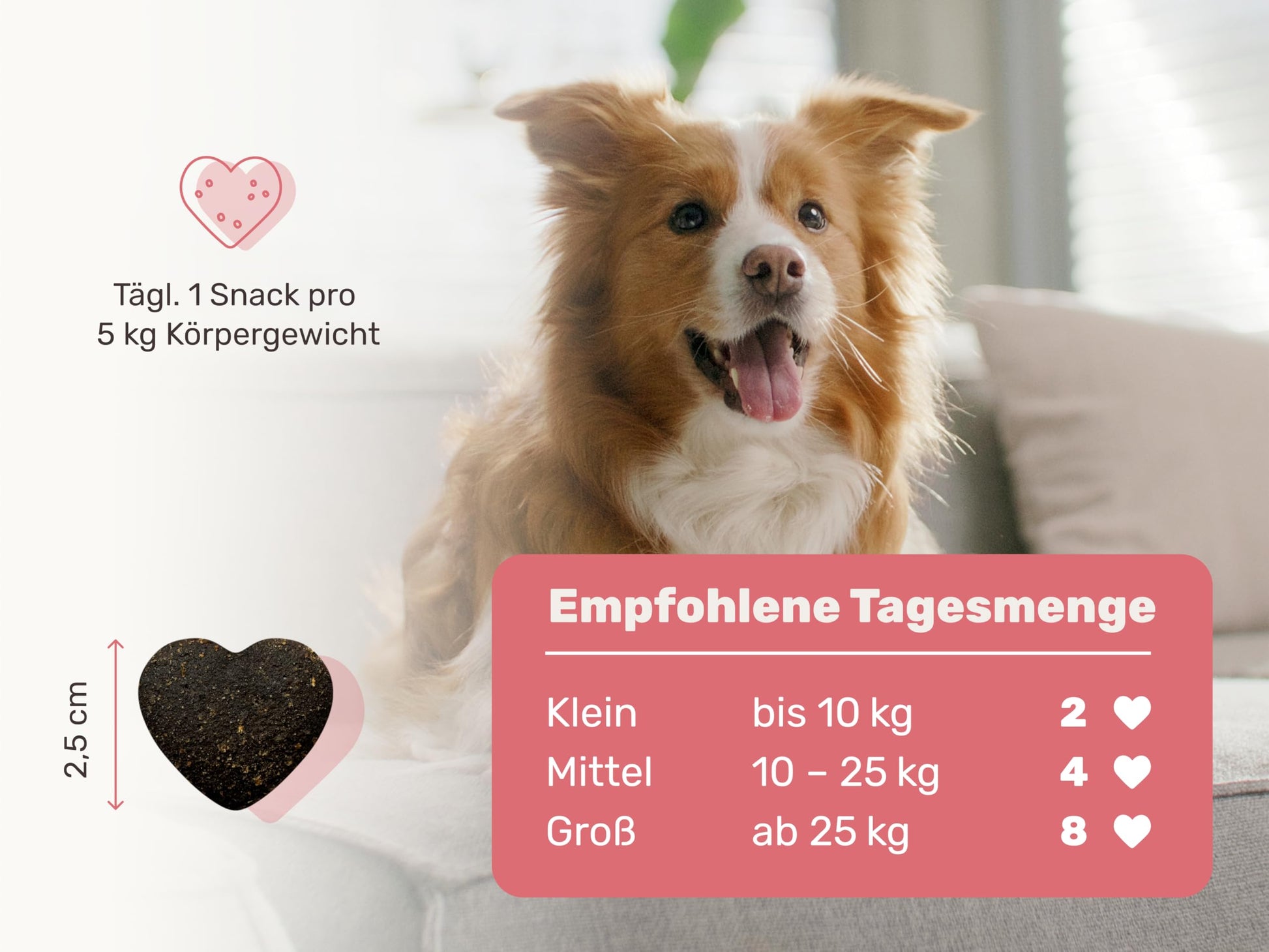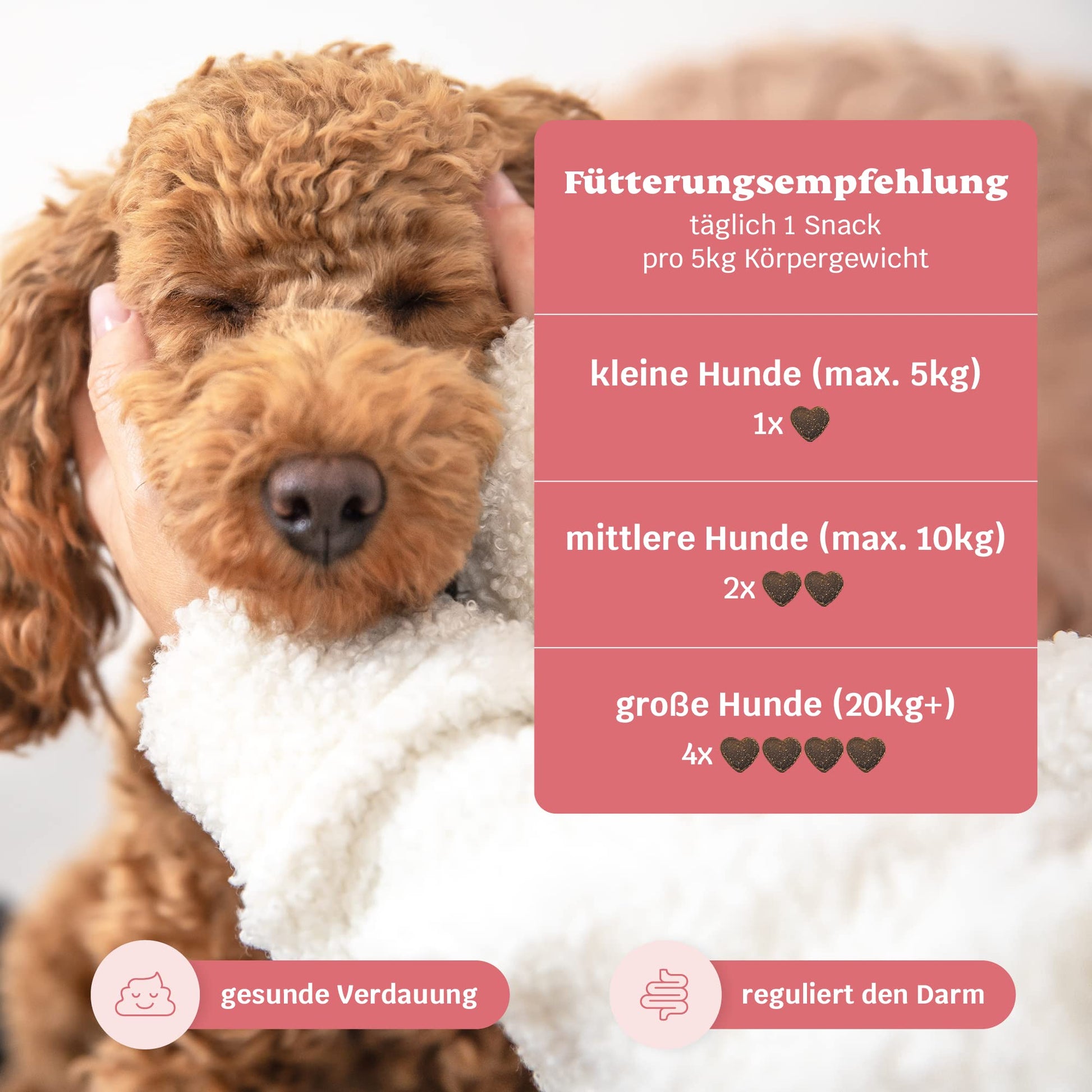 PROBIOTICS: A healthy gut flora is important for overall well-being - not only in humans, but also in dogs. If the natural balance in the digestive tract is disrupted, it can manifest in various ways: stool changes (e.g. diarrhea), bloating, restlessness in your dog, or increased scratching. Stress, diet changes, or external influences often play a role. Probiotics can help support the gut flora in a natural way and contribute to normal digestion.