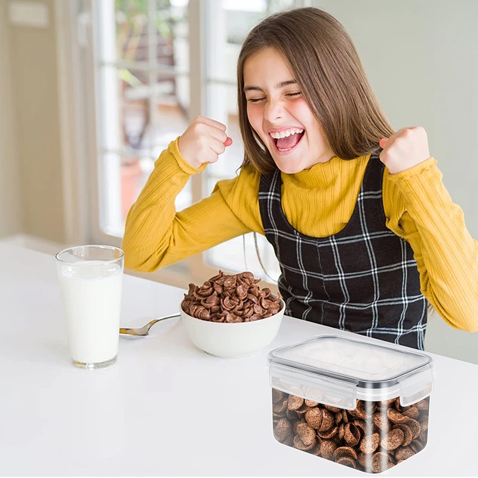["9-piece Storage Container Set】This flour container includes 9 storage containers of the same size. The size of each storage jar is 3.5 x 6 x 4 inches and the capacity is 0.8 liters. 9 adhesive labels and a pen","High-quality materials: Storage jars made of food-grade plastic, BPA-free, containing no harmful substances. The kitchen storage box can be used healthily and safely.","【Tight Lid on All Sides】Each storage jar is equipped with a silicone sealing strip and four locking buckles to ensure that no water and air can enter, to better ensure the freshness and health of the ingredients in the kitchen storage boxes and make the grain. Very dry dispenser","Perfect for kitchen storage: Can hold flour, sugar, snacks, carbonated drinks, healthy natural foods, dry foods, or breakfast cereals.","Stackable design: The storage jars are designed and upgraded by professionals, which can save space. The storage box can be easily placed in the cabinet, refrigerator, and other places where you want to place it, and the storage jars are easy to clean."]