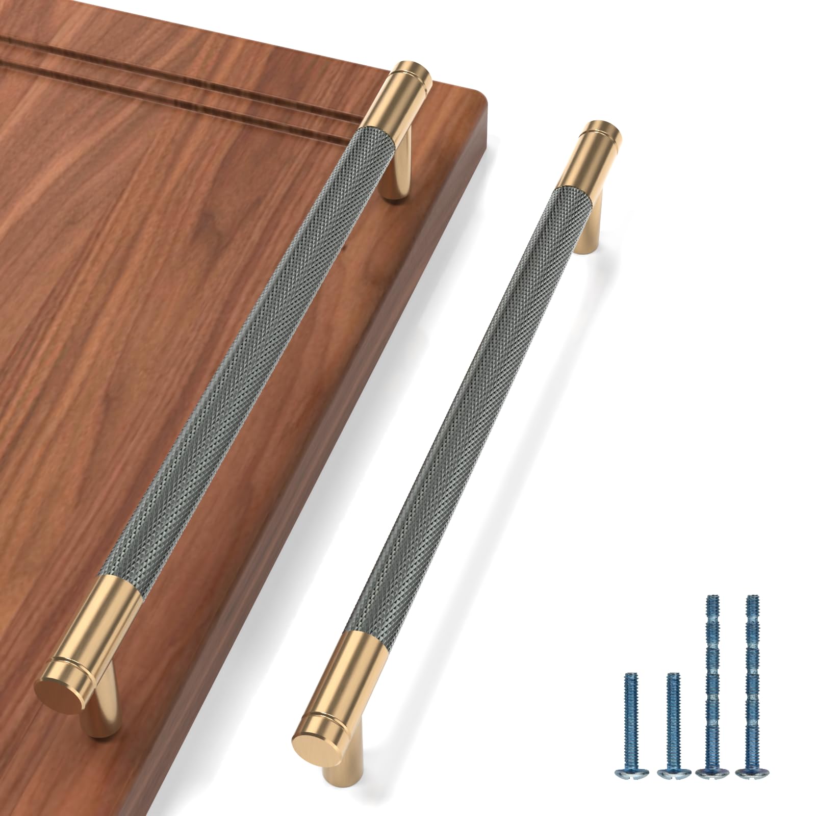 9BUILD 10 pieces Cabinet Handles Gold and Grey Hole Spacing 192mm Handles for Kitchen Cabinets Knurled Furniture Handles Kitchen Handles Furniture Handles Kitchen Cabinet Cabinet Door Handles EU0020