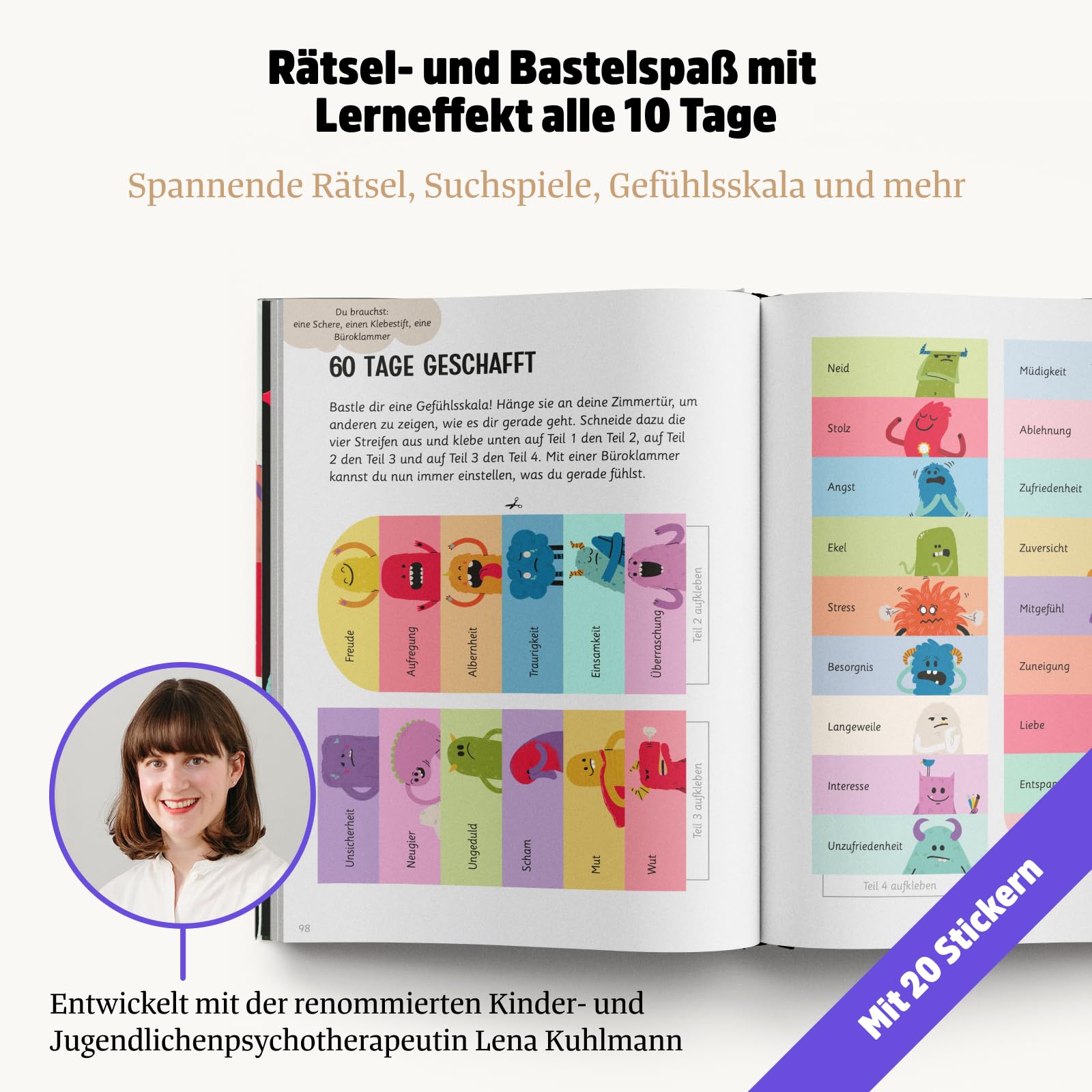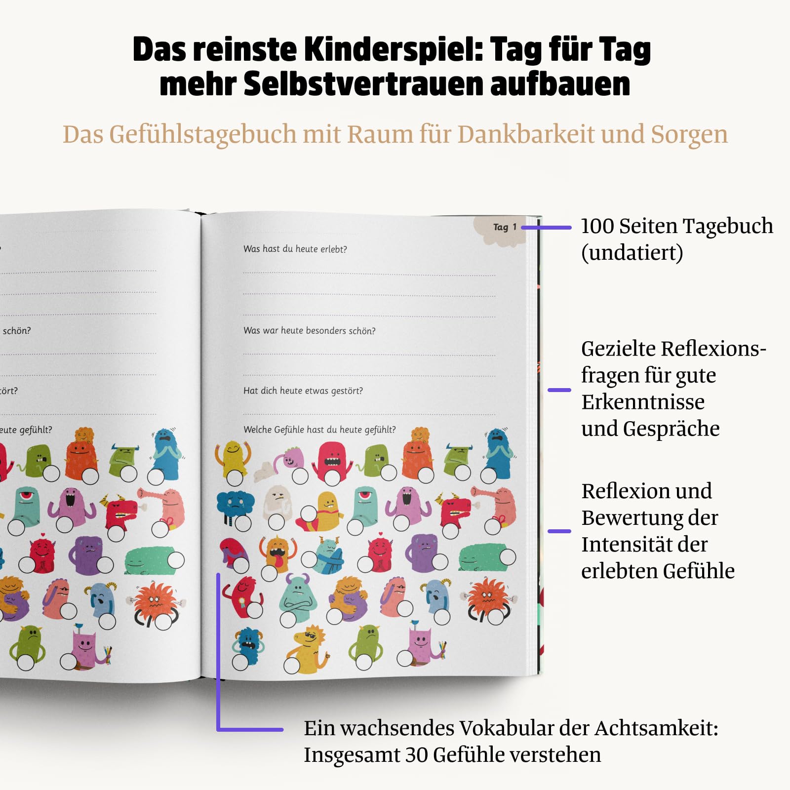 PLAYFUL LEARNING: On 100 diary pages, children can reflect on and process their daily experiences and feelings. This promotes a routine of mindfulness, gratitude, and self-love. Every 10 days, there is a game, puzzle, or craft idea as a reward to deepen learning and maintain motivation.