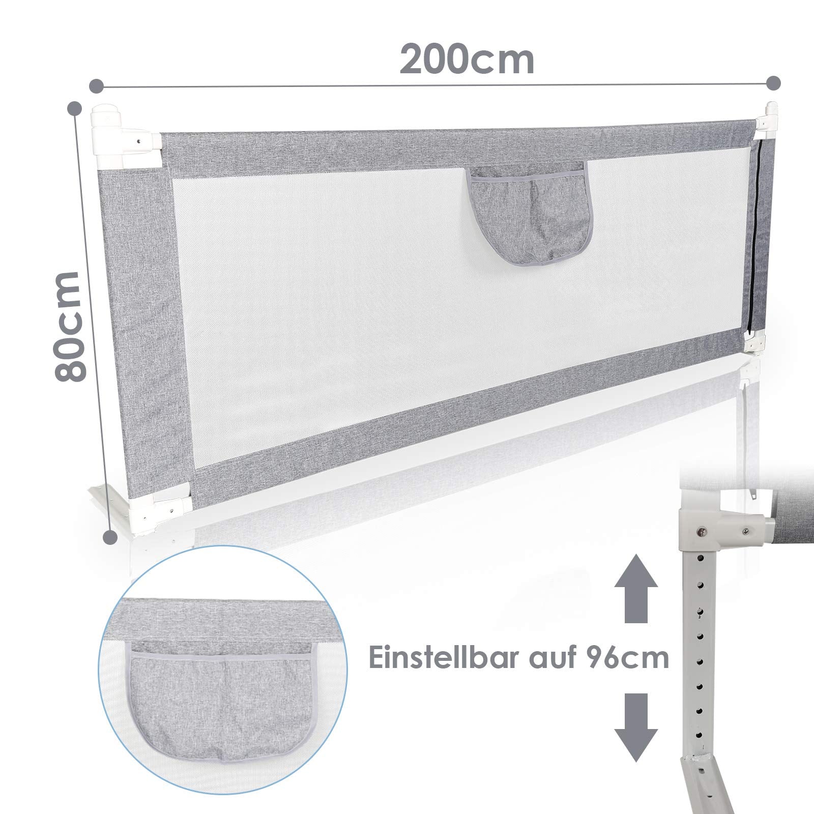A white bed rail 200 * 80 cm bed guard for children's bed foldable height adjustable fall protection suitable for children's beds, parental beds anti-fall for baby bed gray