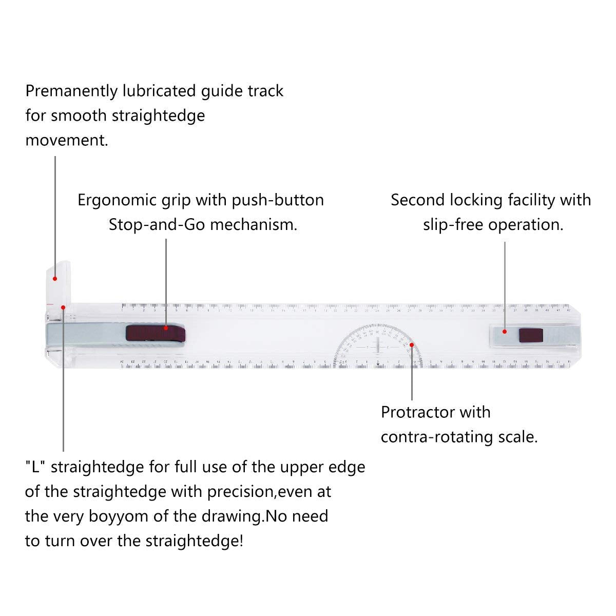 ["Preciva DIN A3 Drawing Board in Metric System, Ruler made of high-quality and break-resistant plastic 19.7 x 14.4 inches","100% Accuracy Whether for school, work, or leisure, you get a solid drawing board with good accessories.","Very precise and easy to use. The paper can be easily clamped and does not slip.","Ergonomic design for easy and comfortable work + Parallel drawing rail with stop-and-go locking mechanism; Sturdy A3 drawing board made of break-resistant material for long durability.","Once the paper is clamped and the rail is inserted, nothing wobbles on the paper, allowing for clean work. The rail can be moved up and down and locked with a movement to the left or right. This is particularly important for filling in a text field, as all letters sit on an imaginary line."]