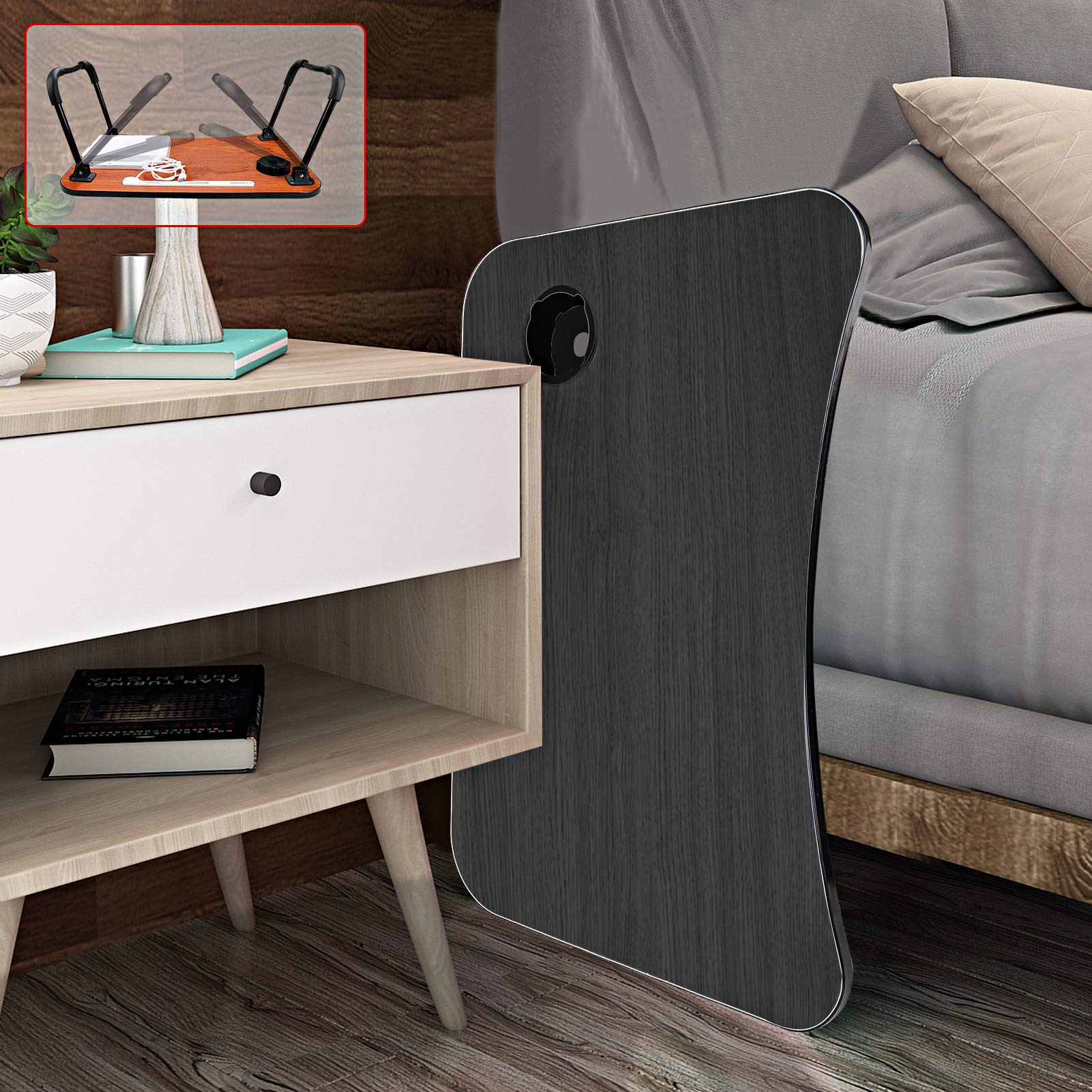 "【Environmentally friendly】- The bed table wood made of MDF solid wood particle board is safe and environmentally friendly. Smooth surface, non-toxic, moisture resistant, scratch resistant, high temperature resistant. The curved table design is ergonomic, the four table corners are also rounded, the laptop table can also be used as a children's game table, no need to worry about collisions."]