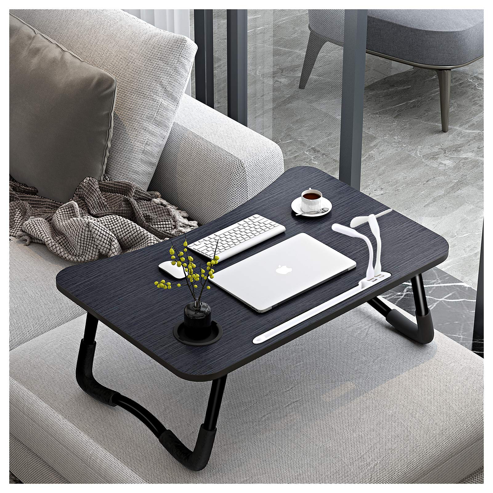"【Multifunctional】- The laptop table is 23.6(L) x 15.7(W) x 10.2(H) inches and can be used on 11-17\" laptops. Laptop bed table with 4 USB charging ports, easy to charge; 1 drawer for stationery or other small items; 1 cup slot, water cup is not easy to spill; 1 pad stand, can hold tablet (side length <9 inches) and phone, convenient for you to watch movies or video calls; additionally, we will send you a USB desk lamp and a USB fan as a gift with the bed table.",