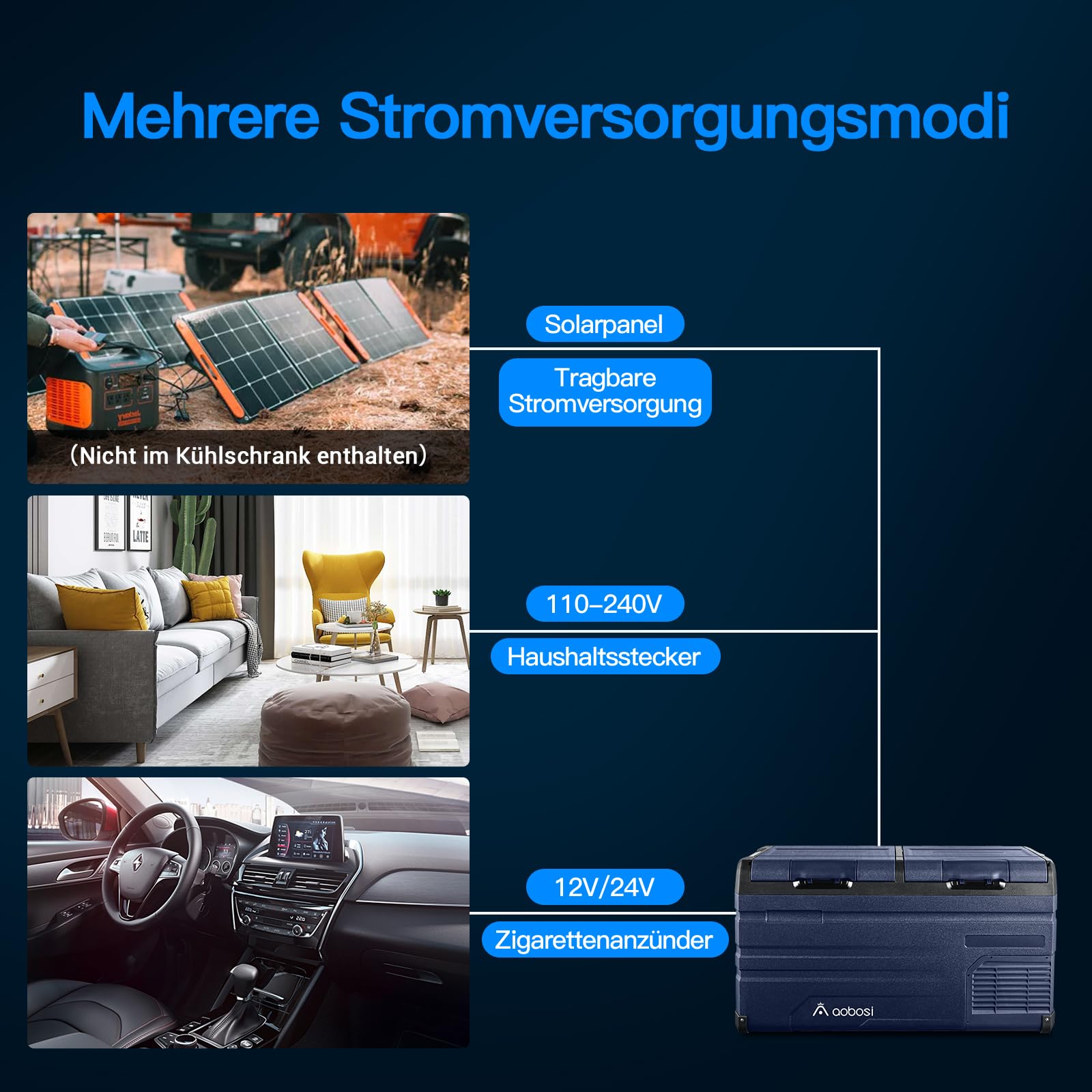 AAOBOSI 72L compressor cooler, car cooler with WiFi app control USB port, 12/24V and 100-240V cooler up to -20°C for car, truck, boat, RV, camping.