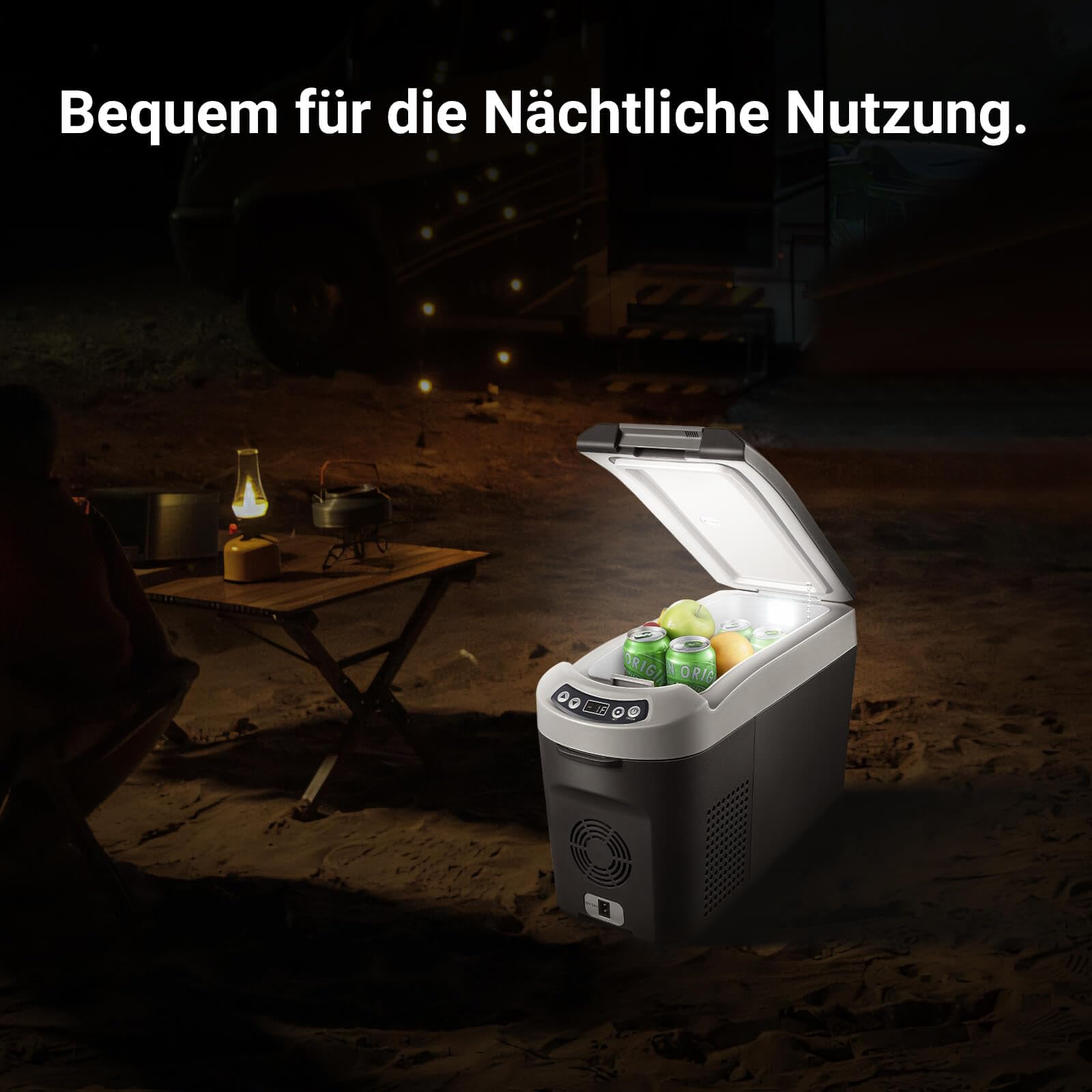 "Quiet Operation and Built-in LED: This electric cooler operates at a noise level of less than 45 decibels, which is not disturbing and allows you to have a peaceful journey. A digital display and control panel allow you to monitor and adjust the refrigerator temperature at any time, while the built-in LED lighting provides light in poorly lit environments."