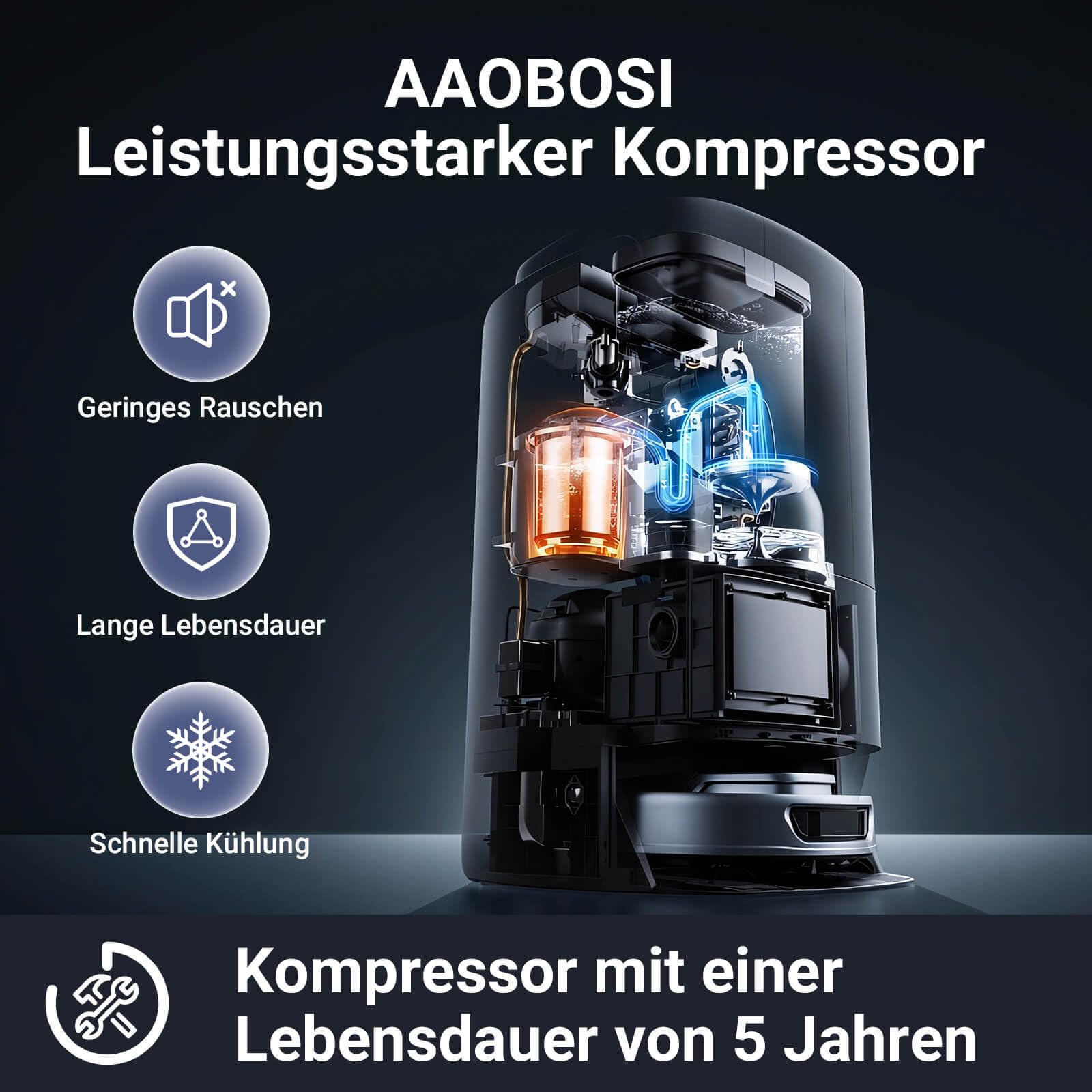 "Quick Cooling: The AAOBOSI car cooler uses a powerful compressor for cooling and can cool down to 32°F within 15 minutes, allowing you to enjoy refreshing drinks on the go. It also has a 3-stage battery protection function (H/M/L) to prevent the car battery from draining and the vehicle from not starting."