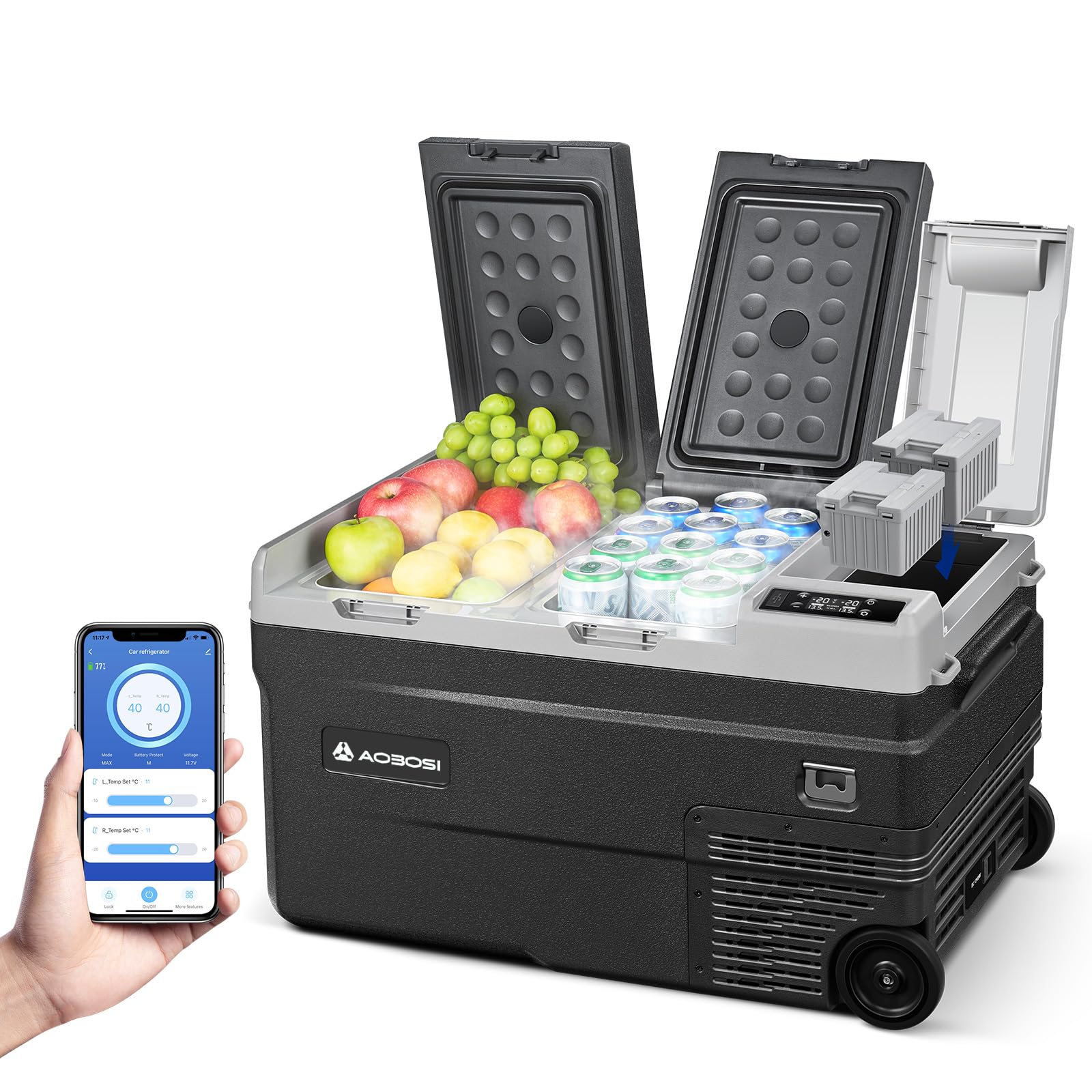 AAOBOSI Compressor Cooler Box 34L, Car Cooler 2 in 1 Dual Zone up to -20°C, Portable 12v 230v with Digital Temperature Control, App Control, Anti-Shake, for Camping, Truck, Boat, RV