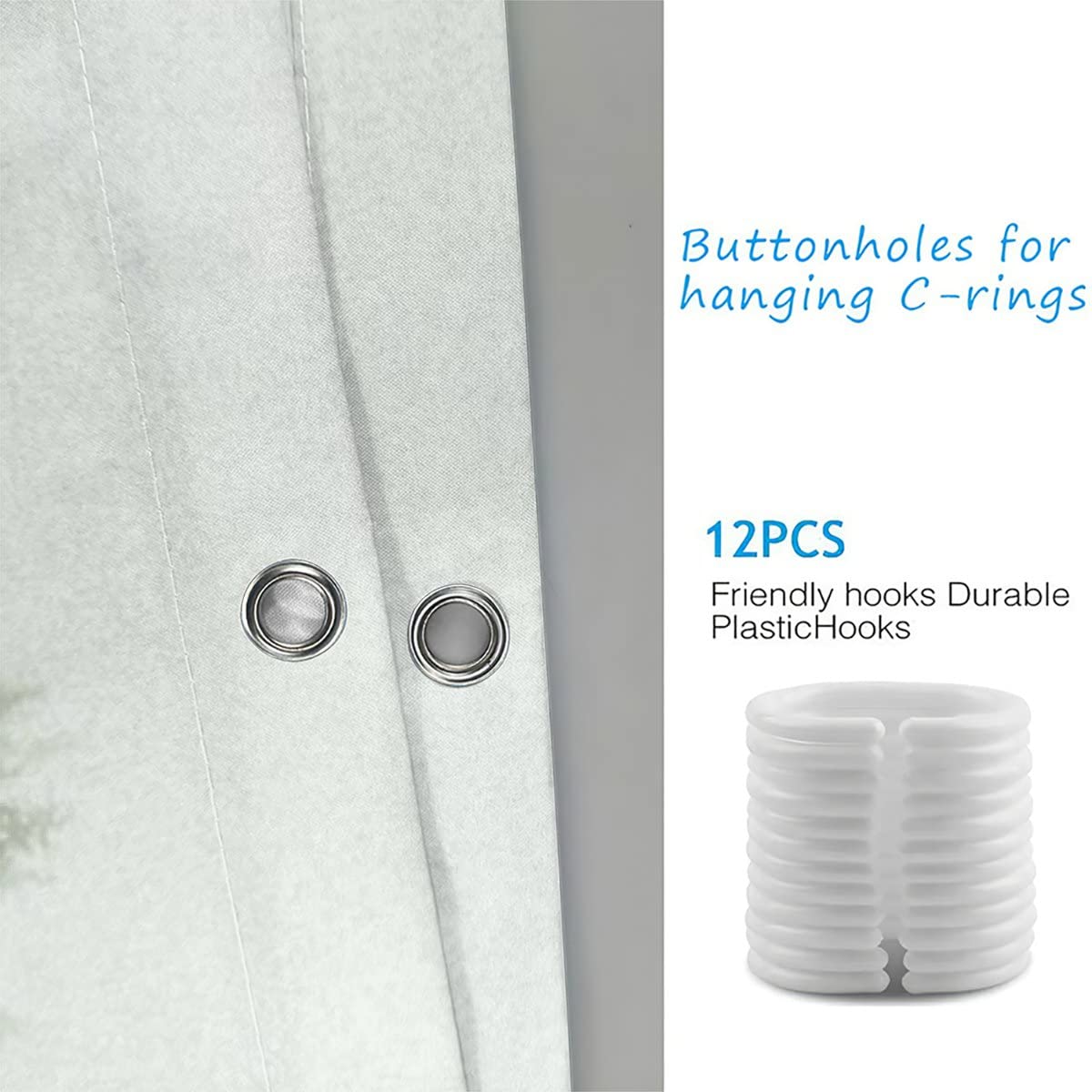 ["🛀【High-Quality Materials】Our shower curtain is made of 100% polyester, waterproof, moisture-proof, mold and bacteria resistant, hydrophobic properties, quick-drying, inhibiting mold growth, no odor. High-quality materials ensure durability and comfort. You don't have to worry even in a damp and mold-prone bathroom!","🛀【Waterproof & Easy to Clean】Waterproof design prevents shower water from splashing or penetrating, separating wet and dry areas. A thick waterproof coating is used to isolate water vapor penetration and keep the bathroom clean and hygienic. It can be easily cleaned with a quick rinse or dried after showering, making it easy to remove shampoo and shower gel residue!","🛀【Decorative & Privacy】Modern 3D motif design, these washable bath curtains use advanced digital heat transfer printing technology and curling process, so the pattern is clear and will not fade. 3D pattern maintains your privacy well. This bathroom curtain will not completely block light, but you cannot see the bathroom, it protects your privacy and gives your bathroom good lighting.","🛀【Easy to Install】Shower curtain measures 240 x 200 cm. Includes 12 hooks, high-quality stainless steel buttonholes, after repeated machine wash tests, it is not easy to come loose or fall off. Easy to install and slide. The bottom of the shower curtain is equipped with a lead wire, which has a good trapping effect and prevents the bathroom curtain from floating.","🛀【Applicable Scene】Shower curtains for single apartments, large families, luxury hotels, and dormitories. Perfect for any bathroom. Besides being used as a bathtub curtain, it can also be used as a curtain, partition in bedroom, living room, kitchen, and as a photo background for birthdays and wedding celebrations."]