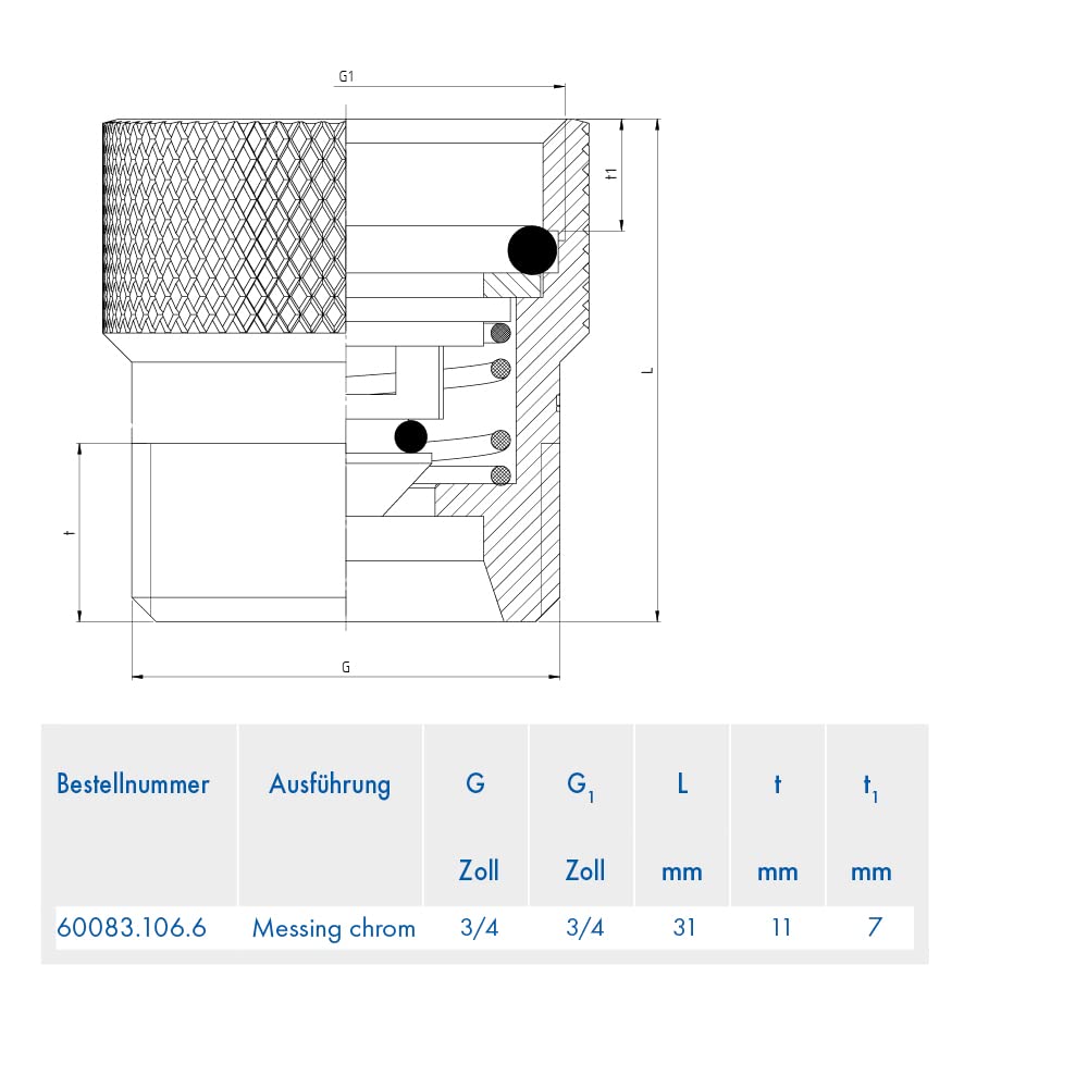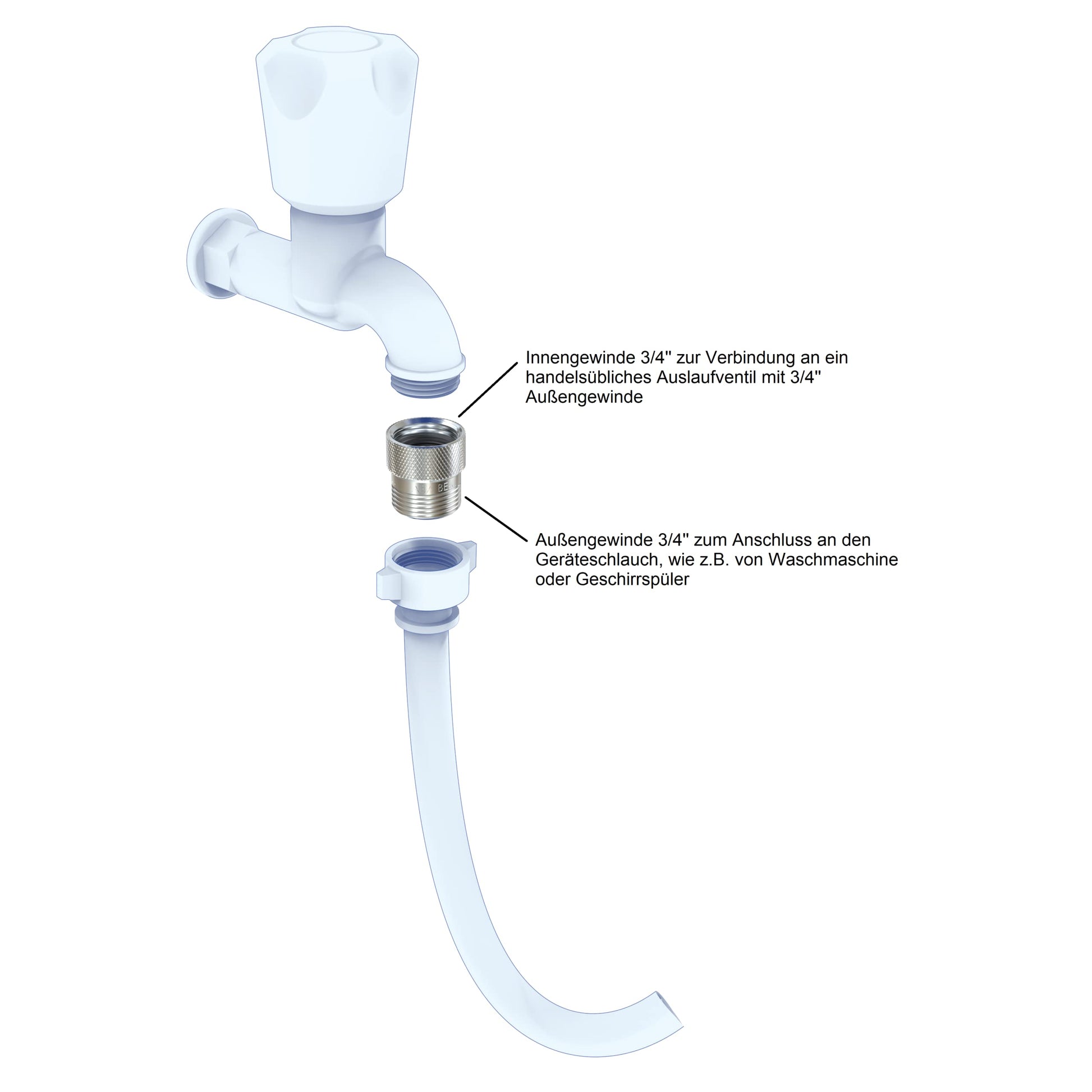 ["High-quality hose space securing with internal thread G3/4 inch.", "Stops water flow in case of bursting or slipping of washing machine and dishwasher hoses.", "For use with commercial household, washing and dishwasher machines.", "Set to approx. 16 l/min flow rate.", "Tool-free installation, hand-tighten.", "Suitable for drinking water.", "Brand quality - 100% Made in Germany!"]