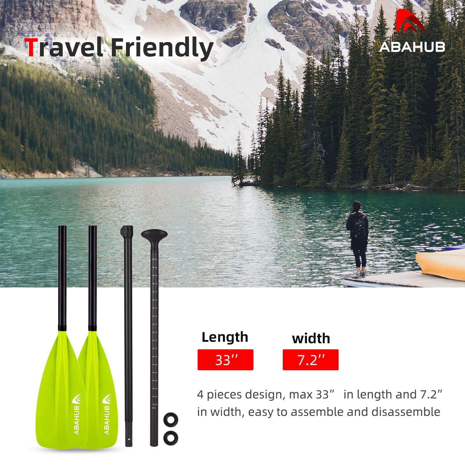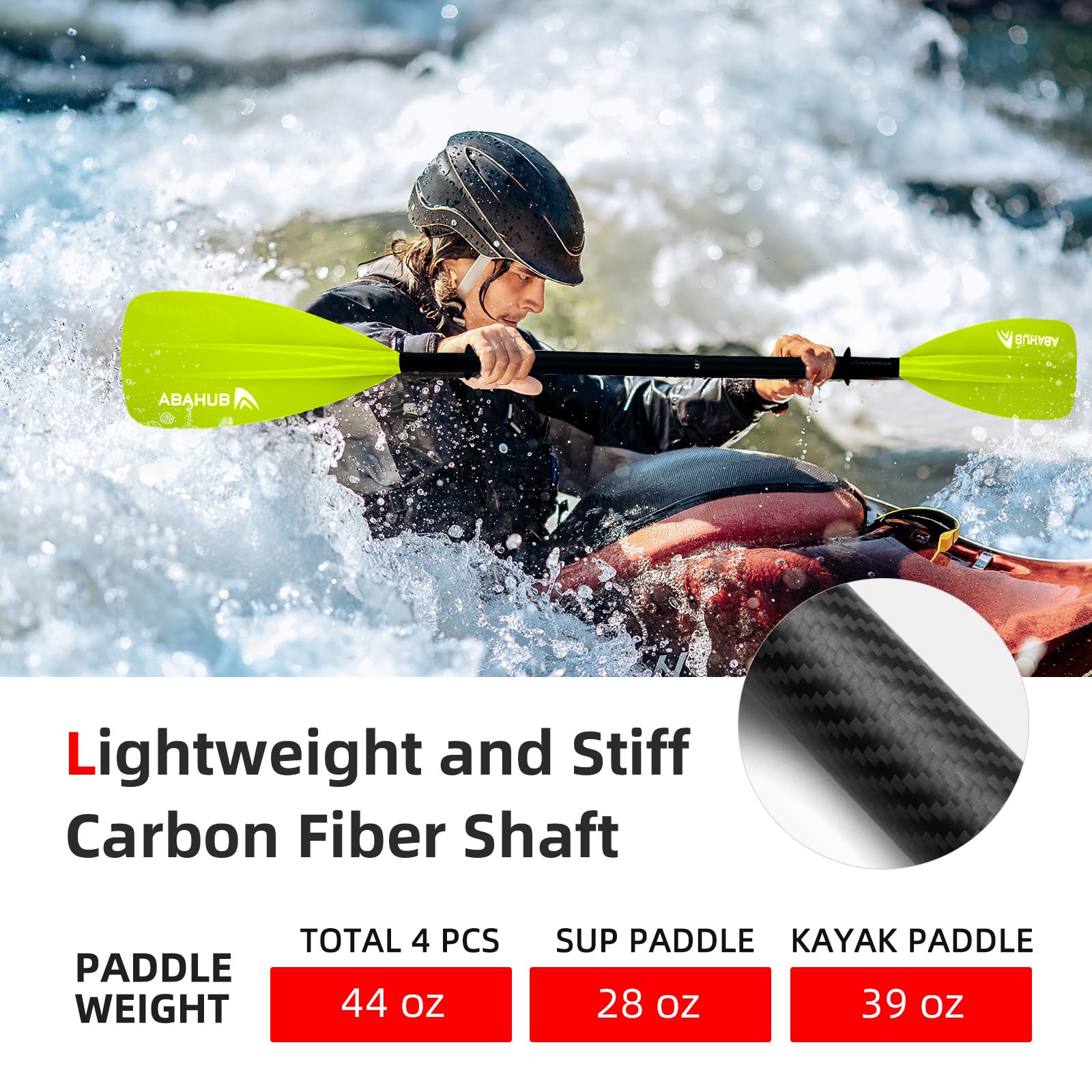 Abahub 4-piece Carbon SUP Paddle/Kayak Oar, adjustable Stand up Paddleboard Paddle, Lightweight Carbon Shaft with green plastic blade