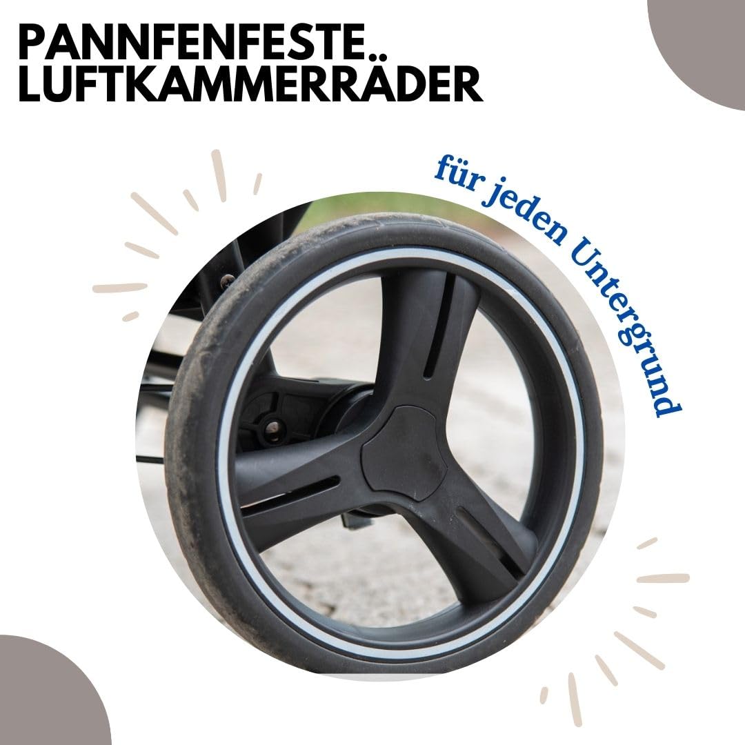 Smooth ride on any surface: Large, puncture-proof all-terrain air tires (18/23.5 cm) provide easy navigation on any surface.