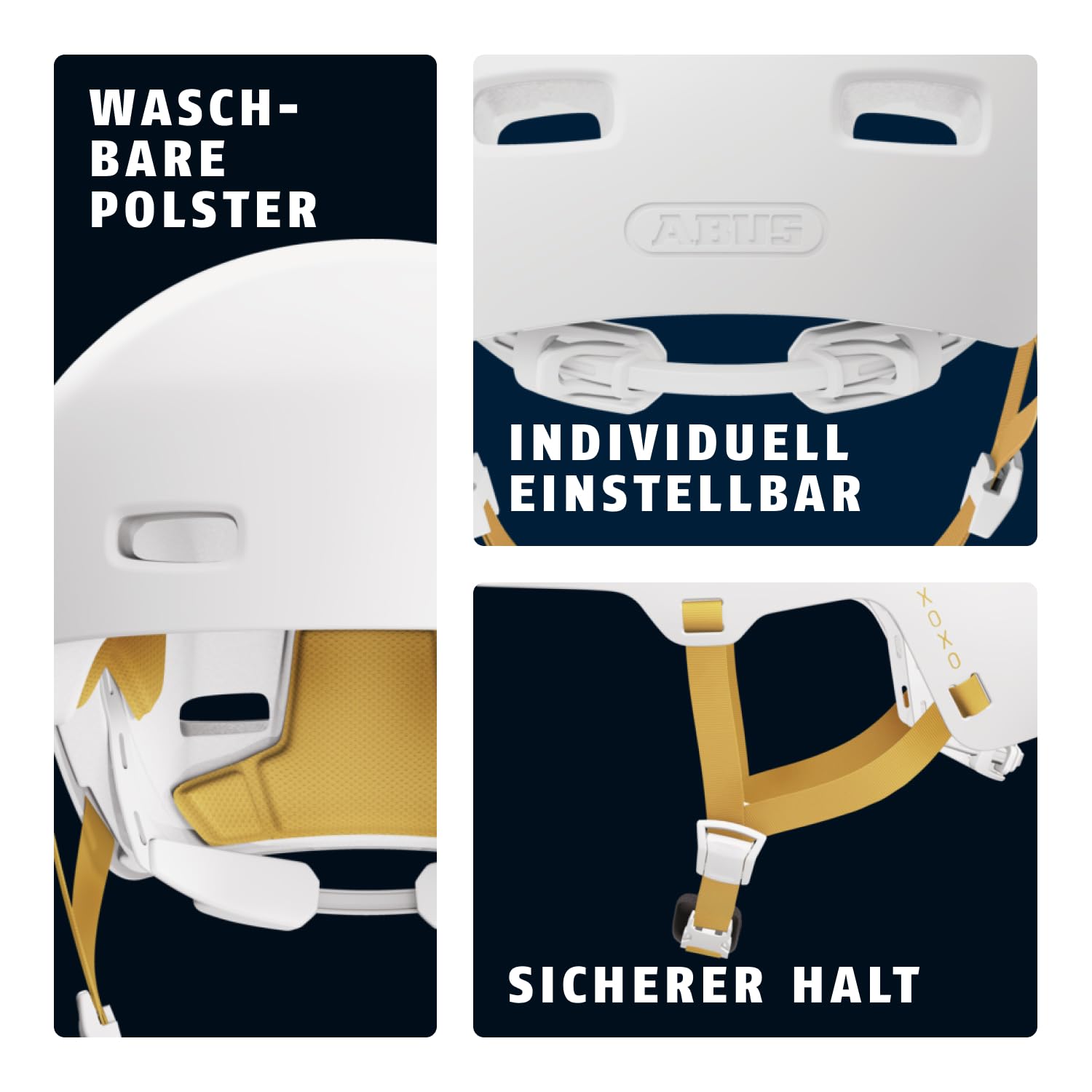 "Special chin padding: when closing the helmet, the ABUS tube padding on the chin protects against skin pinching",