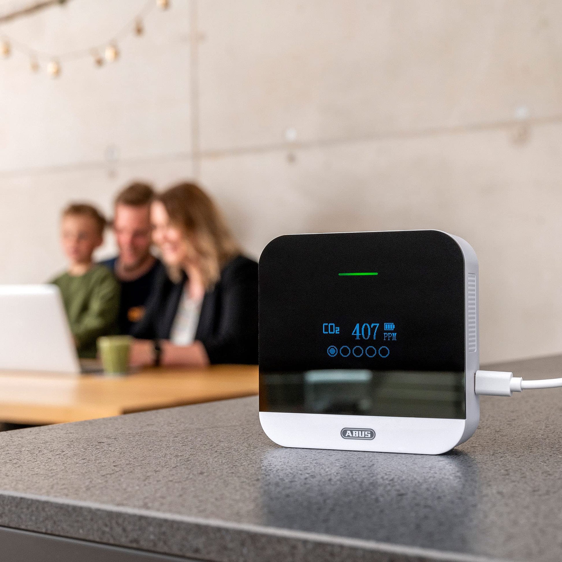 ABUS CO2 Alarm - CO2WM110 AirSecure - Monitor for air quality, humidity, and temperature in the room - with alarm and CO2 indicator - 10-year sensor.