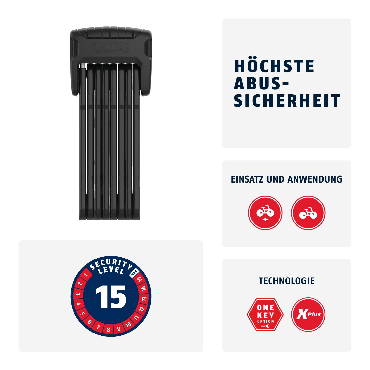 ["ABUS SECURITY LEVEL 15: Folding lock with maximum ABUS security - for the protection of high-quality bicycles & E-Bikes and in high theft risk areas","XPLUS CYLINDER: Disc cylinder that provides high protection against manipulations like picking","DURABLE: 5.5 mm thick bars and housing made of specially hardened steel - covered with extra soft and grippy coating to protect the bike from damage","PRODUCT DETAILS: Bordo 6500K/120 - Length 120 cm (unfolded), Color Black, includes 2 keys & bracket","PROTECTION AGAINST ATTACKS: Special rivets/joints connecting the bars serve as a robust shield against saw attacks and are extremely flexible","SH MOUNT: Lock bracket for easy transport on the bike, tool-free mounting with practical tension straps - the Bordo is removed from the bracket frontally"]