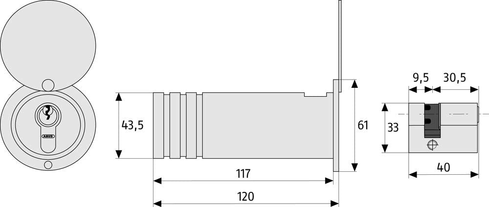 ["Keep keys safe: Key insertion safe for embedding with cover for the cylinder - ideal for surveillance companies or the fire department","High-quality: removable cylinder housing made of chromed brass - with additional drill protection - delivery without profile half cylinder","Works easily: The keys to be stored are fixed to a small ring on the back of the cylinder insert","Key safe for object security: Installation diameter 43.5 mm - basic length 120 mm - diameter rosette 61 mm - inner diameter 39 mm - usable length inside 78 mm","Safe, reliable, and sturdy. This is what the name ABUS stands for. Whether it's about home protection, object security, or mobile security: ABUS sets the standards"]