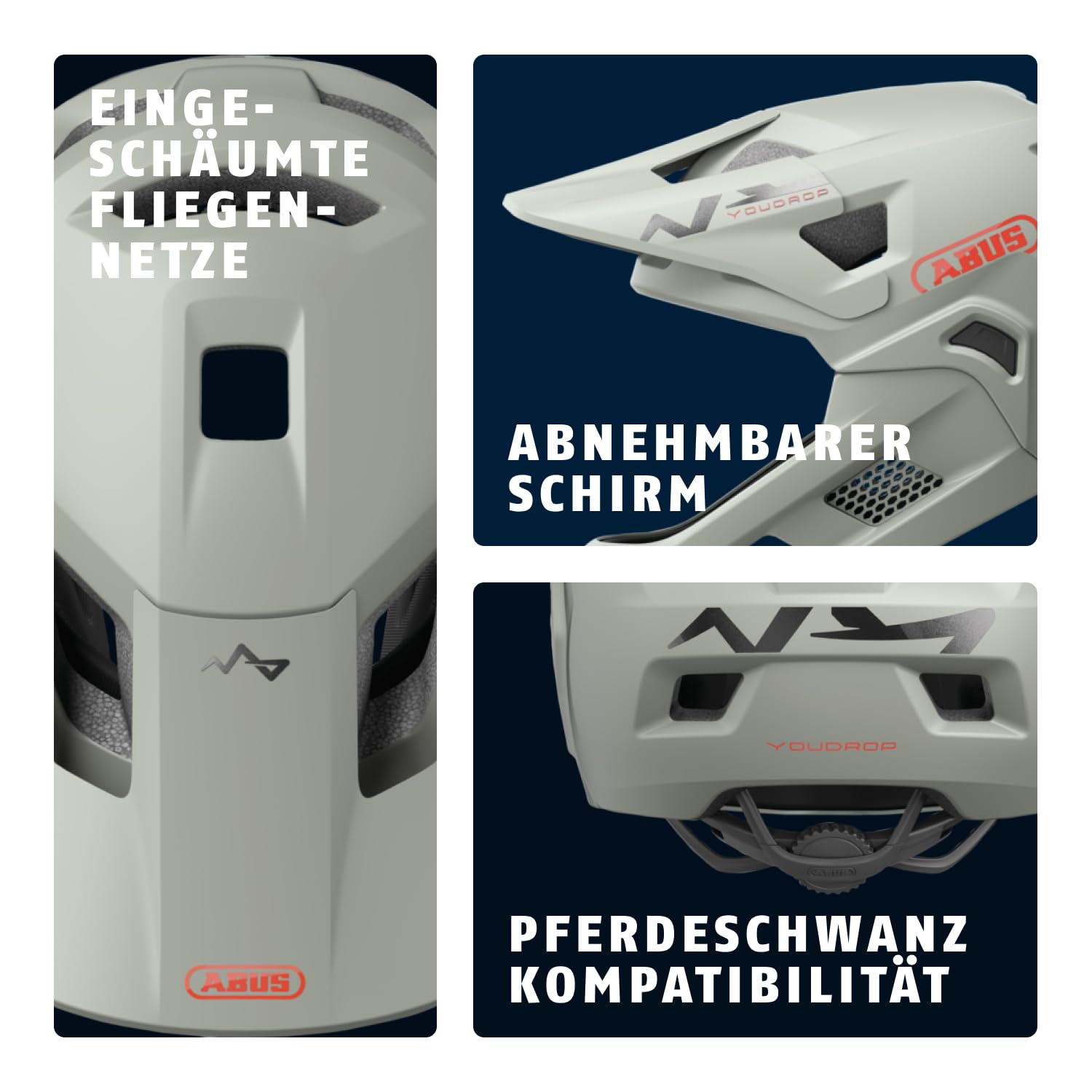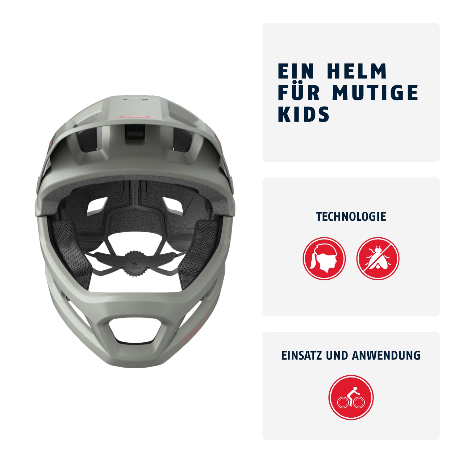 ABUS MTB helmet YouDrop FF - Fullface helmet for kids and teenagers - perfect for getting into mountain biking - with removable chin guard - Grey, Size S