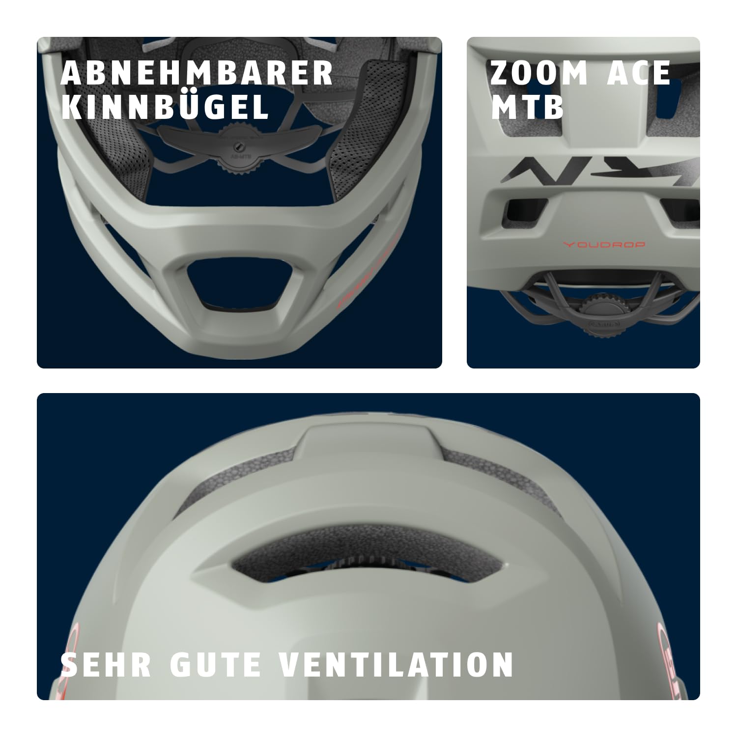 "INDIVIDUELLE PASSFORM: Zoom Ace MTB adjustment system with a grippy adjustment wheel at the back of the head allows for individual adaptation to the wearer's head circumference"