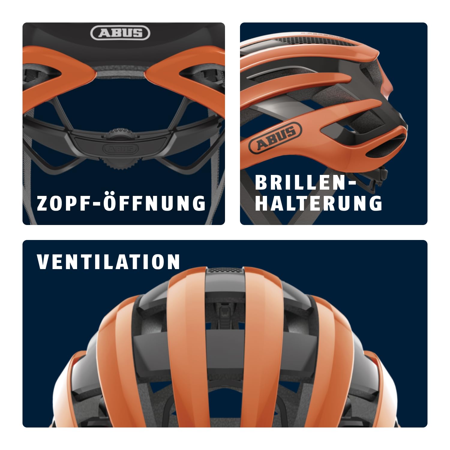 ABUS road bike helmet AirBreaker - high-end cycling helmet for professional cycling - for teens and adults - helmet for women and men - orange, size M