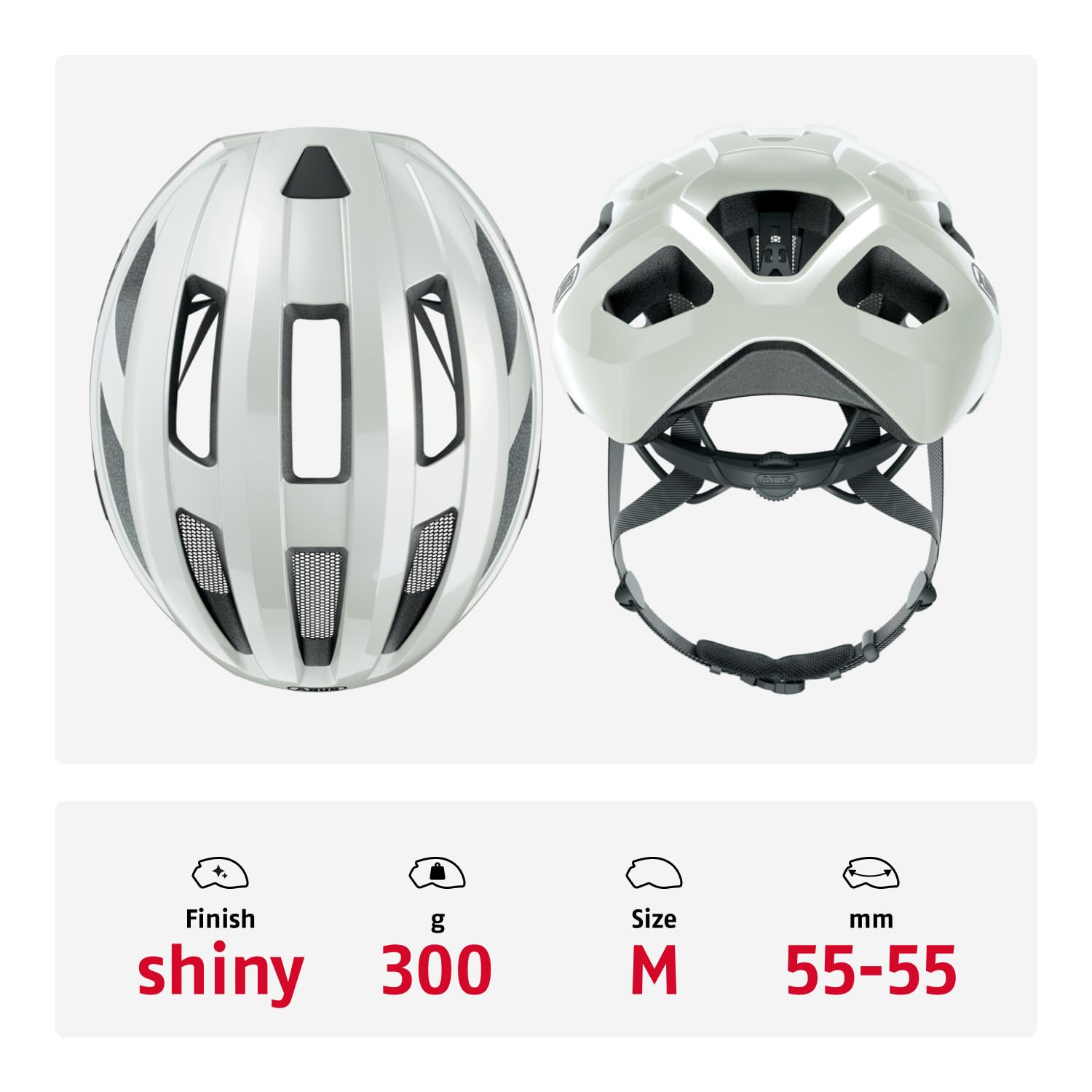 ABUS road bike helmet Macator - sporty bike helmet for beginners - also suitable for riders with ponytails - for ladies and gentlemen - glossy white, size M