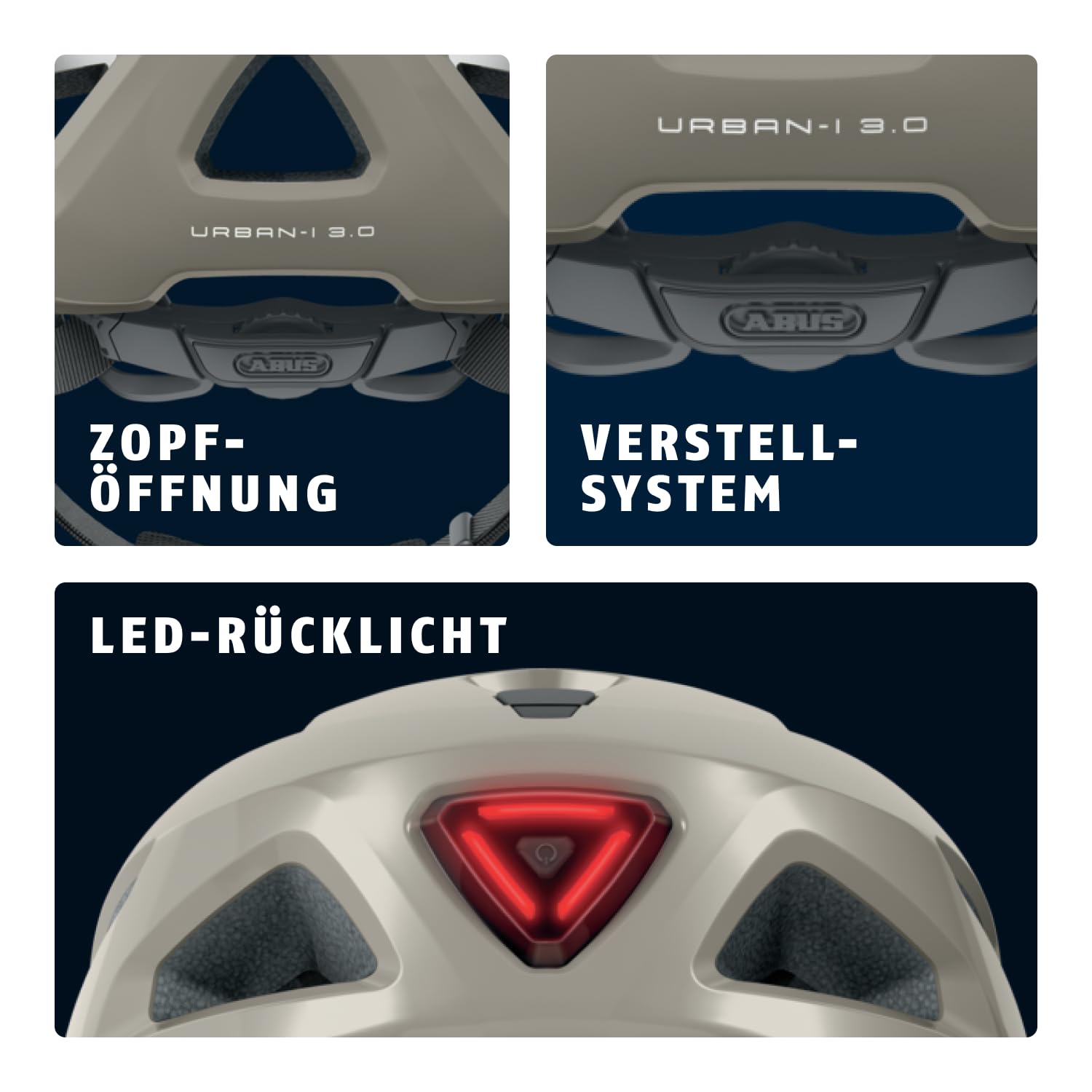 ABUS Urban-I 3.0 City Helmet - bike helmet with rear light, visor, and magnetic closure - for men and women - Grey Glossy, Size L