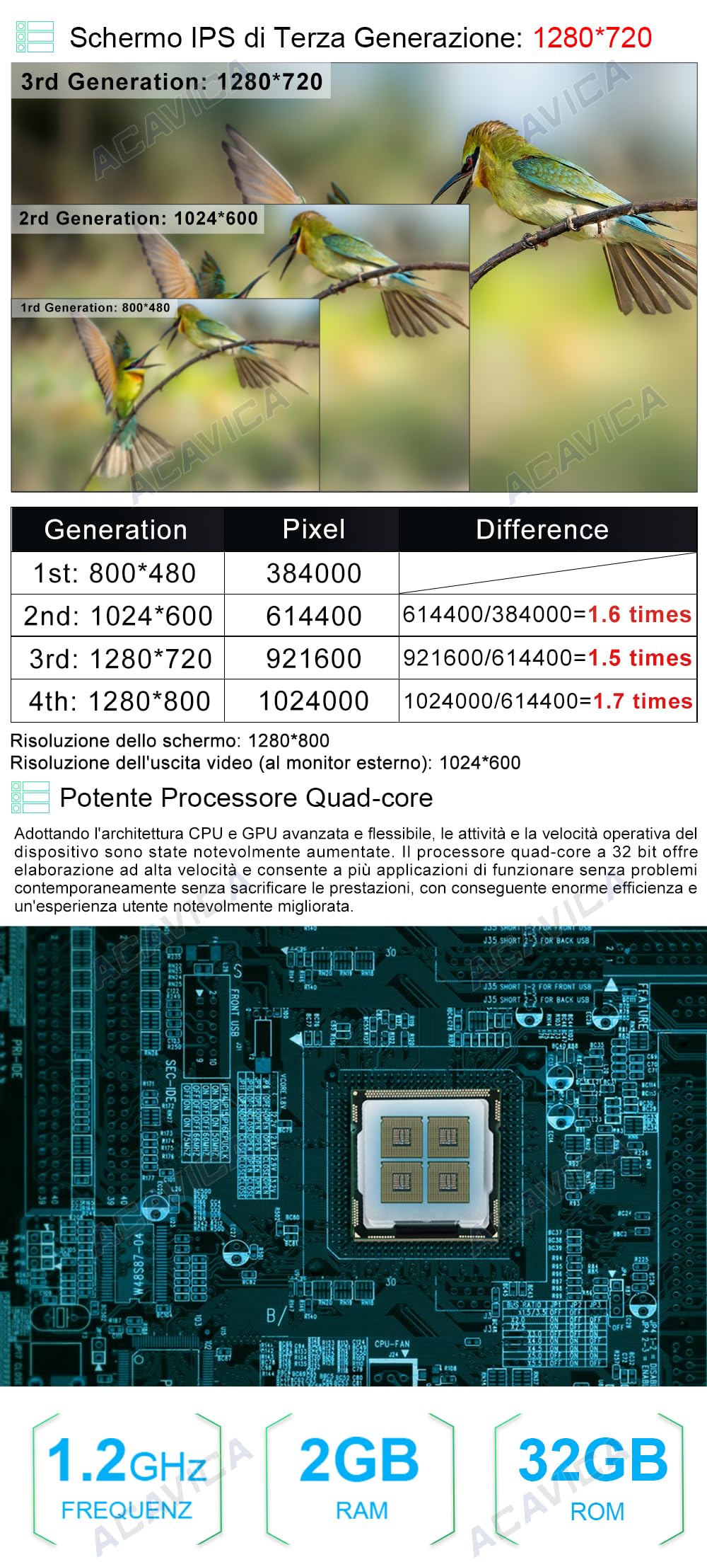 ["System"] Android System, Quad Core, Cortex-A7 MP4, max. 1.3 GHz, 2 GB RAM and 32 GB ROM, ensure smooth operation and faster response, 9 inch 1280 x 720 pixel high-resolution display.