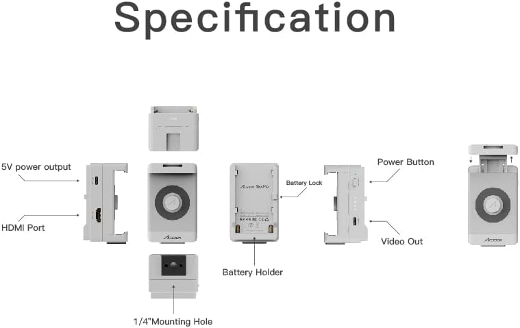 ["SeeMo is powered by rechargeable NP-F series batteries that are widely available. A single NP-F 970 type battery can last up to 8 hours. A useful 5V 2A USB-C output port on the side of the SeeMo allows powering of devices like microphones or small on-camera lights."]
