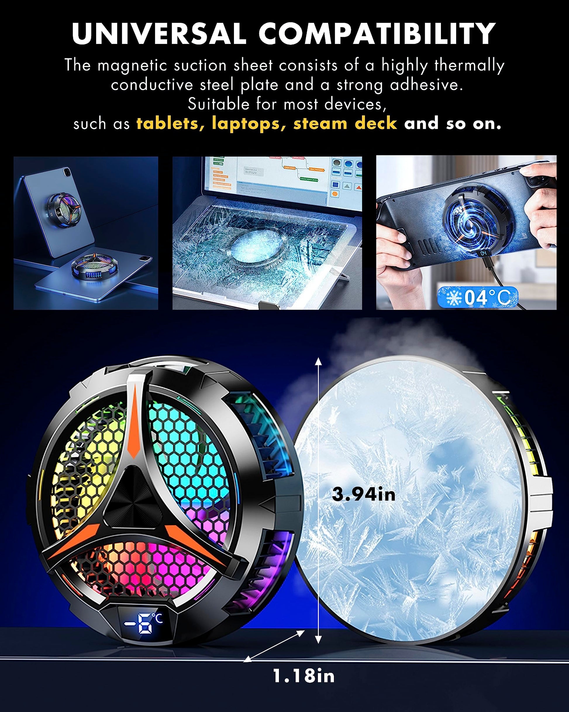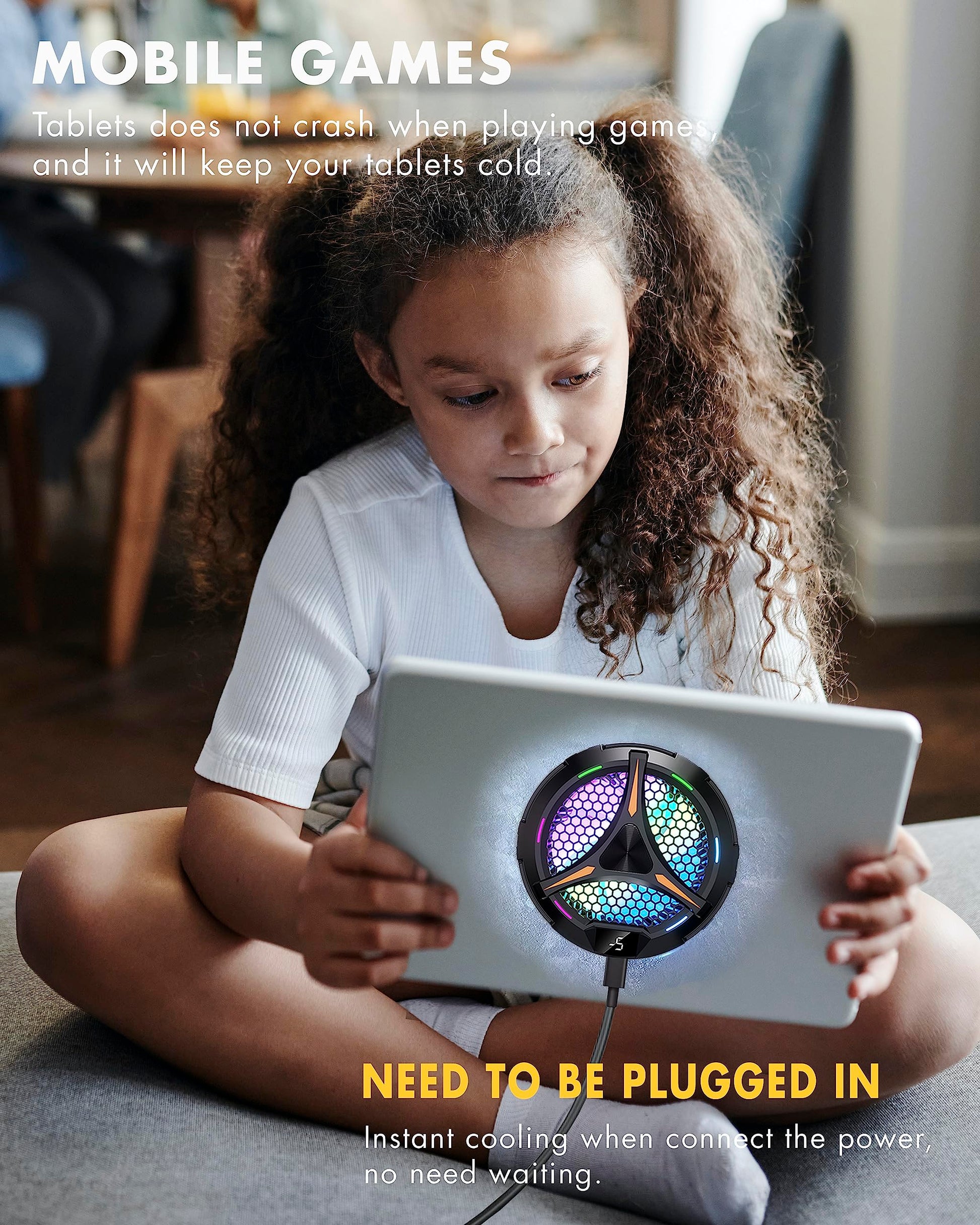 ACEDAYS iPad Cooler, magnetic tablet cooler for iPad/Surface Pro/Samsung Tab, compatible with Steam Deck, universal radiator with temperature display for mobile gaming, Tiktok Live Streaming.