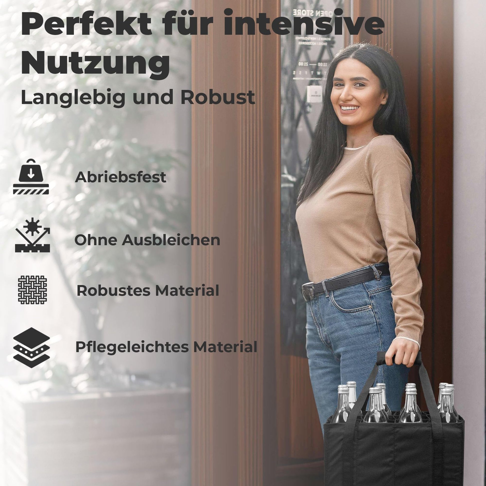 ["ROBUST & VERSATILE: Perfect as a 12-bottle drink carrier. The Achilles bottle bag (36 cm x 27 cm x 27cm) made of tear-resistant polyester provides secure transport for water bottles, beer, wine, and more.","SILENT TRANSPORT: Thanks to the sturdy dividers, bottles are securely held without clinking. Ideal as a portable bottle organizer for the car, kitchen, or cellar.","PRACTICAL FOLDABLE: When not in use, the wine bag can be folded flat and stored for space-saving – perfect for on the go or at home.","COMFORTABLE & SECURE: Equipped with tear-resistant carrying straps and Velcro coupling – also suitable as a beer carrier to effortlessly transport heavy loads.","UNIVERSALLY USEFUL: Can also be used as a man's handbag for beer. A practical and stylish solution for transporting drinks for a men's night."]