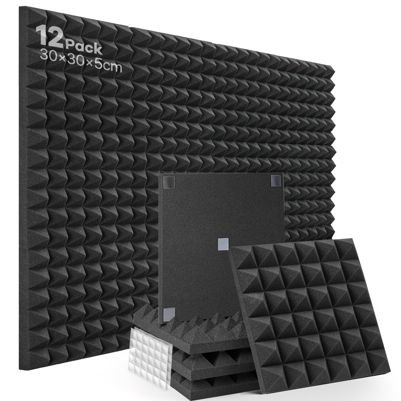 Acoustic Foam 12 Pieces Soundproofing High-Density Sound Absorber Wall Reduce Reverberation Noise for Podcast Recording Studio Soundproofing with 60pcs Stickers Included, 30x30x5cm.