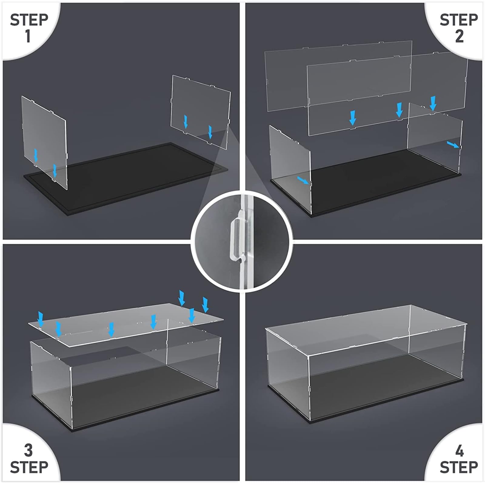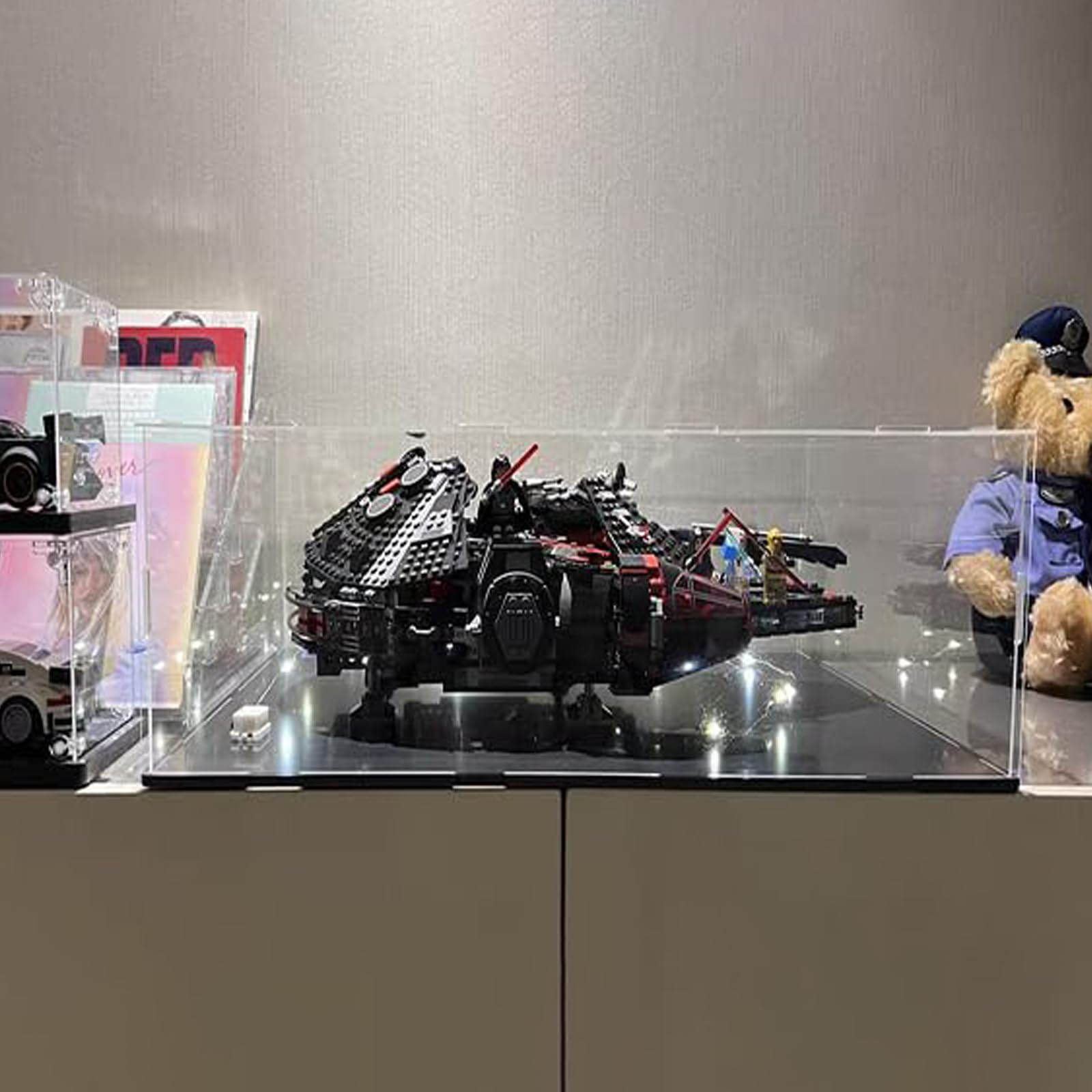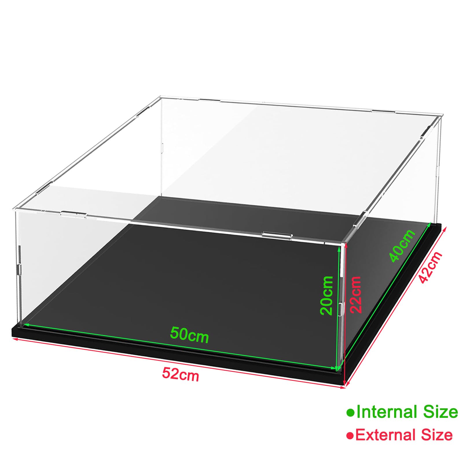 ["【High-Quality Material】Thickened premium acrylic (3mm thickness) + wood-plastic base. Effectively reduces sunlight and UV radiation.","【Size】50x40x20cm (interior size). The exterior dimensions will be 2cm longer than the interior dimensions.","【LEGO Models】The acrylic showcase display case is suitable for LEGO 75389 Dark Millennium Falcon, 75394 Imperial Star Destroyer, 75337 AT-TE Walker, 75354 Coruscant Guard Gunship. Ideal for action figures, models, toys, cars, and collectibles.","【Easy to Install】Acrylic panels come with double-sided protective films. We recommend only tearing off the protective cover around the holes until fully assembled to avoid scratches on the acrylic panels. Be sure to wear gloves during assembly.","【Stable & Stackable】Sturdy and durable structure. You can stack multiple boxes. The top cover fits a little tightly, which helps to keep the rest of the panels together strongly."]
