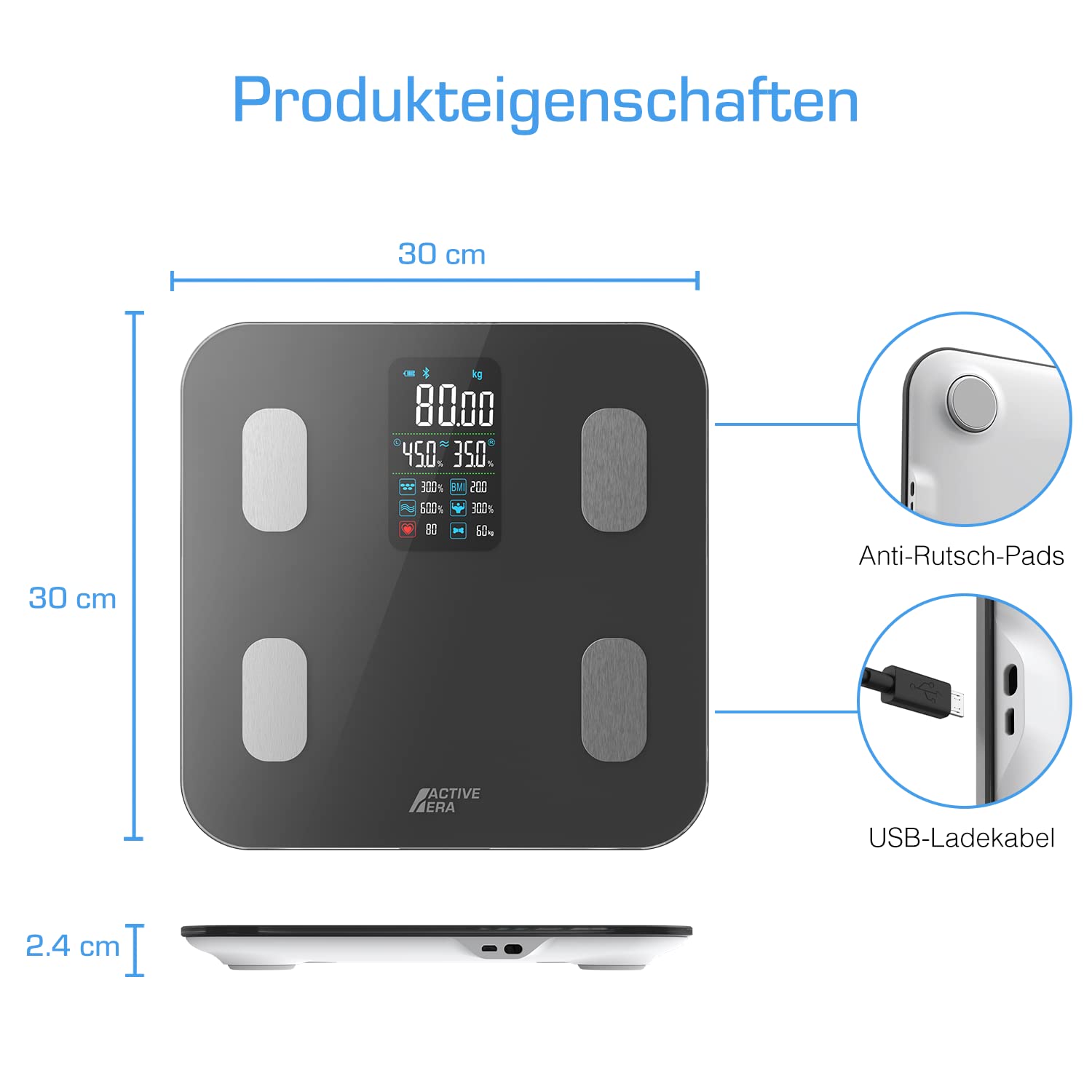 Active Era Bluetooth Body Fat Scale with large LED display - Bluetooth body fat scale with 16 measurements, highly accurate body weight, Body Mass Index (BMI), Free smartphone app (Black)