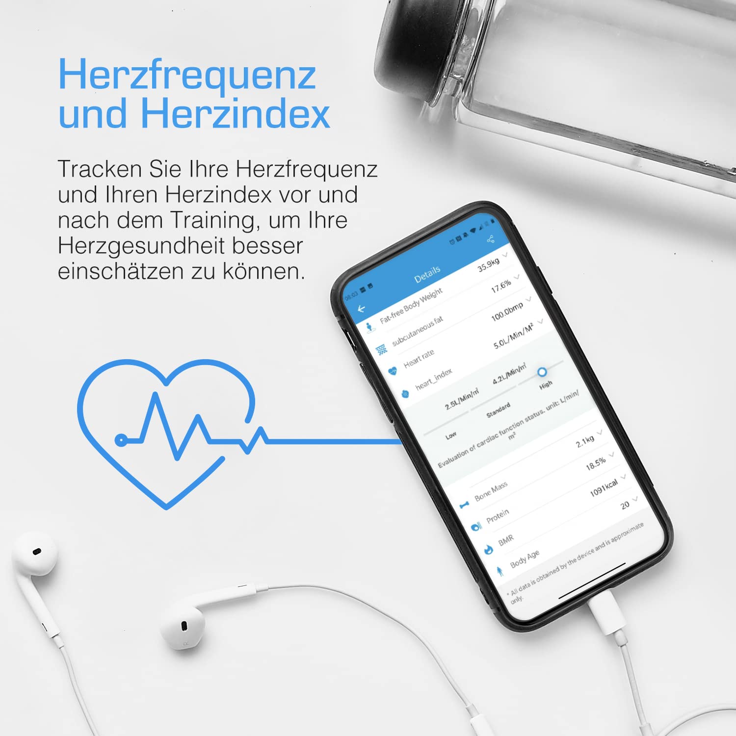 16 ESSENTIAL VALUES: The smart scale uses industry-leading BIA technology to provide precise data on body composition including weight, BMI, body fat percentage, visceral fat, body water percentage, muscle mass, bone mass, body balance, heart rate, heart index, BMR (energy expenditure), and metabolic age. All values are easily accessible through the Active Era app.