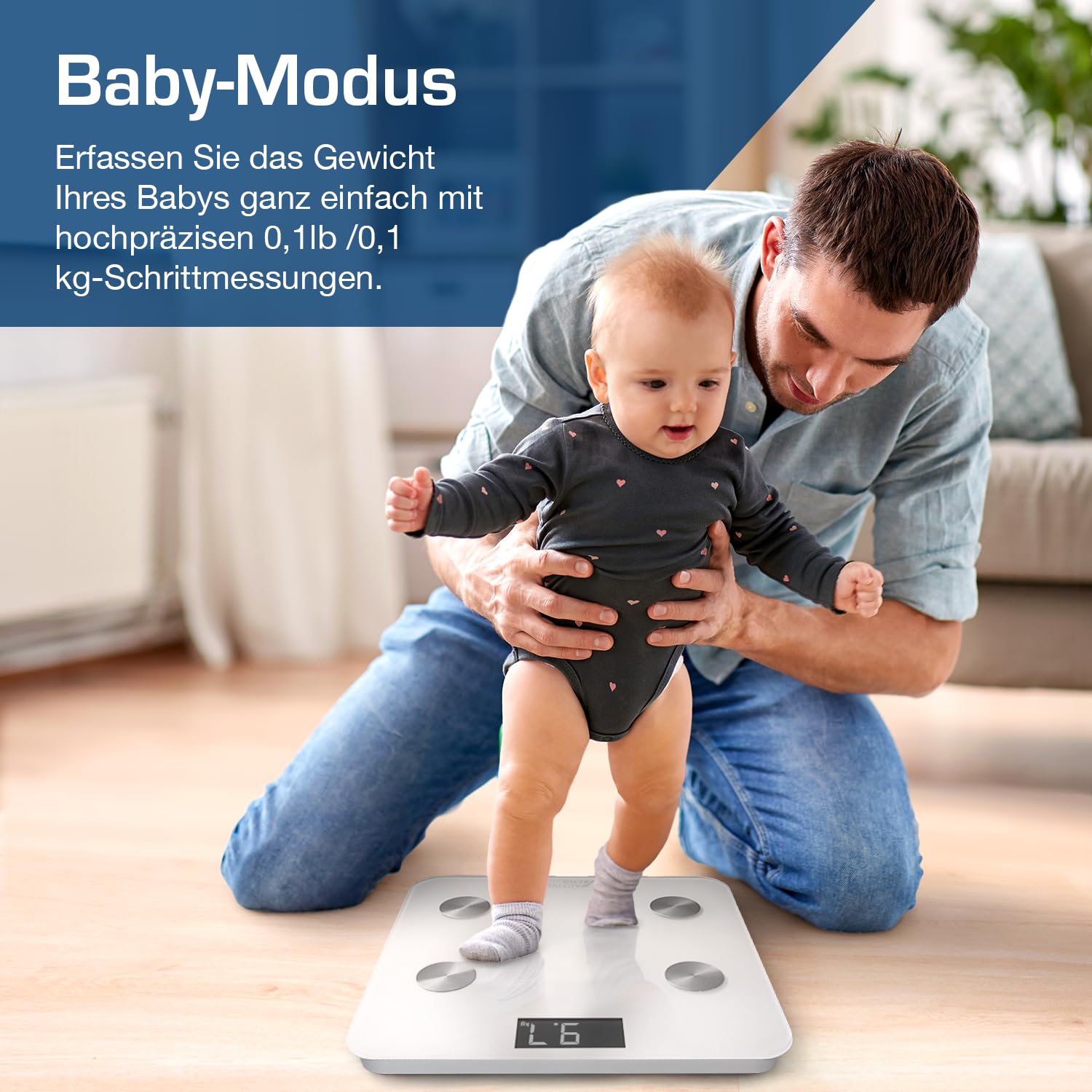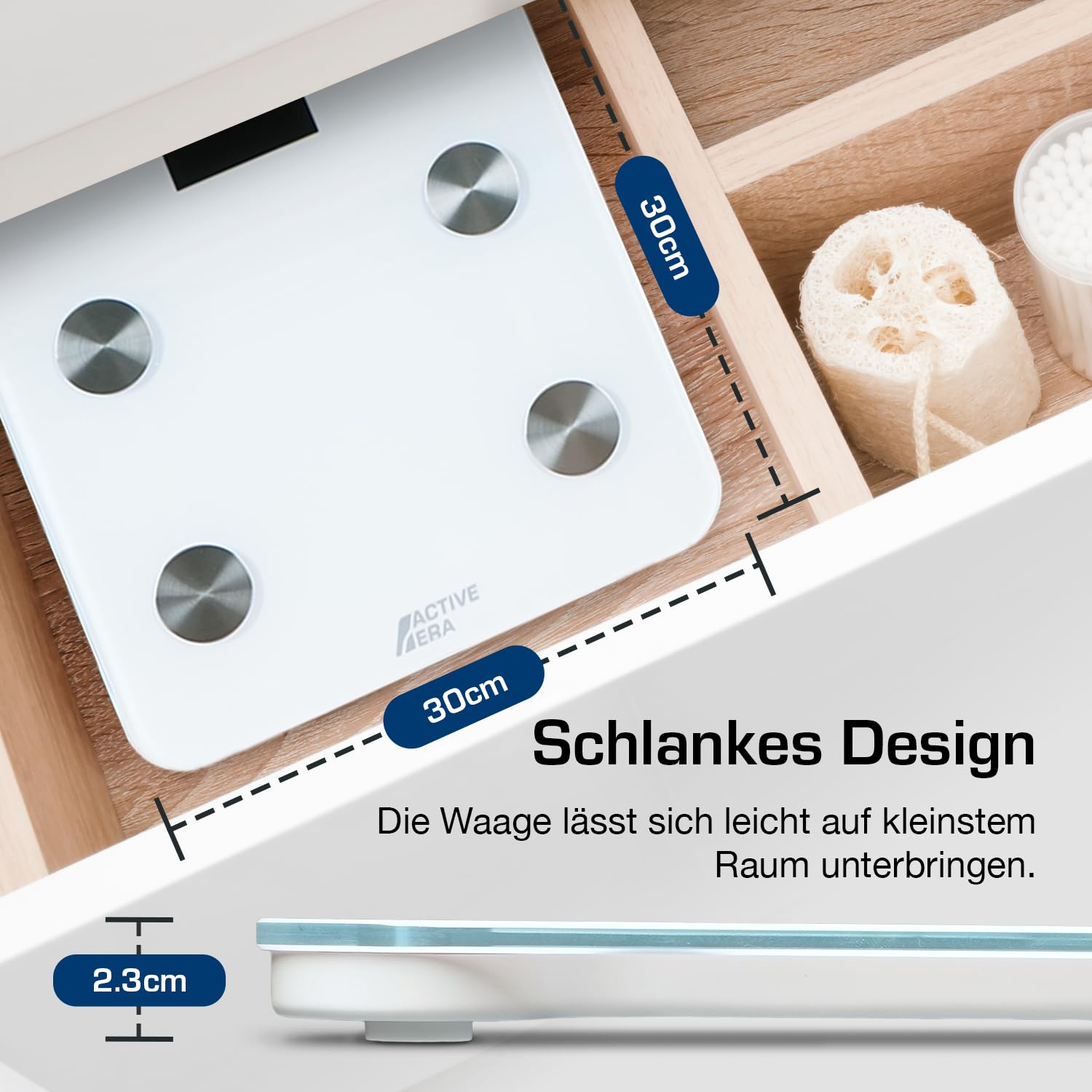 ACTIVE ERA Body Fat Scale - Digital bathroom scale with app - Smart Bluetooth scale for body analysis - Body fat, BMI, weight (max. 180 kg), muscle mass, water, protein, bone weight - White