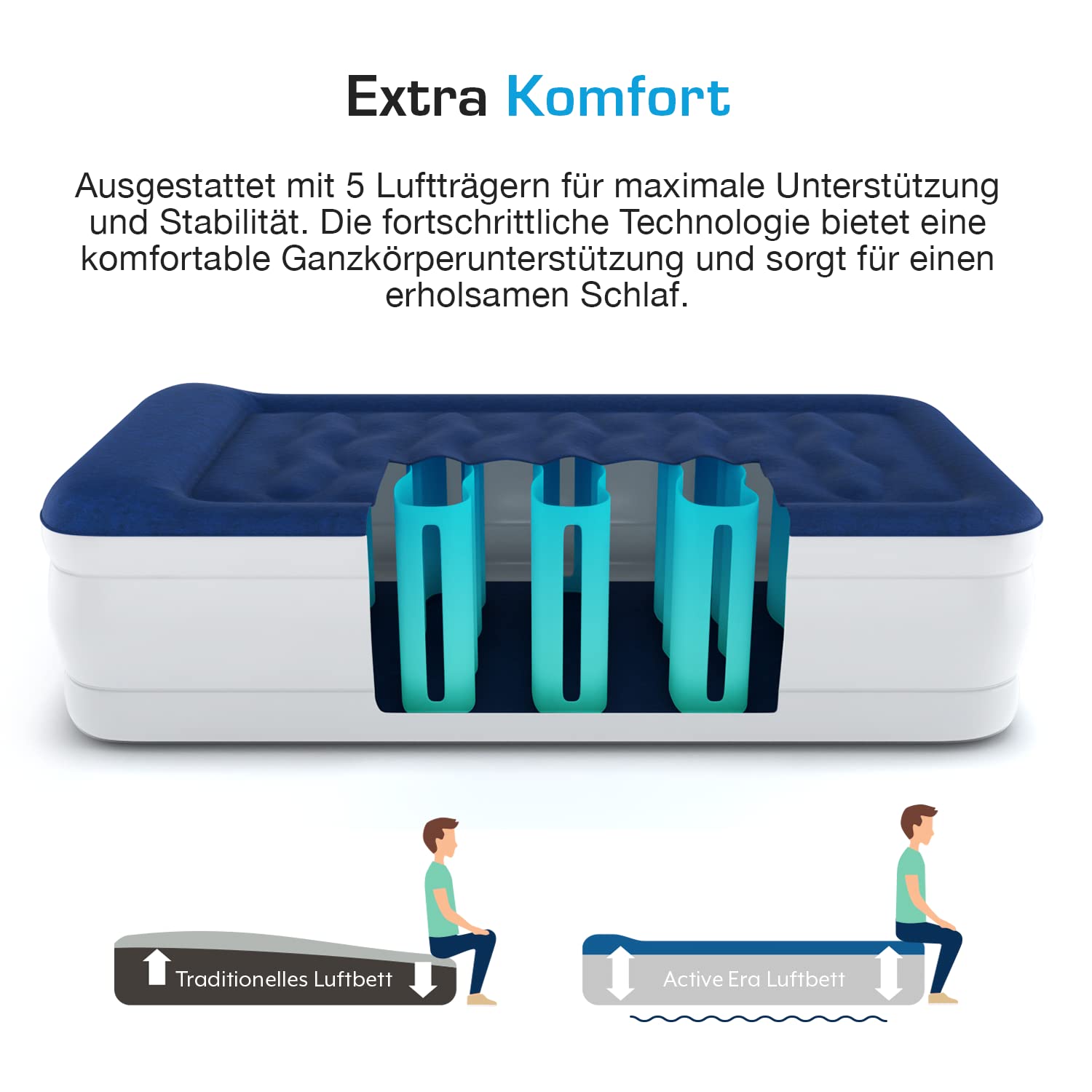 Active Era Luxury Air Bed for 1 Person, self-inflating air mattress with built-in electric pump & integrated pillow, Inflatable mattress for camping & guest bed - 99 x 191 x 53cm