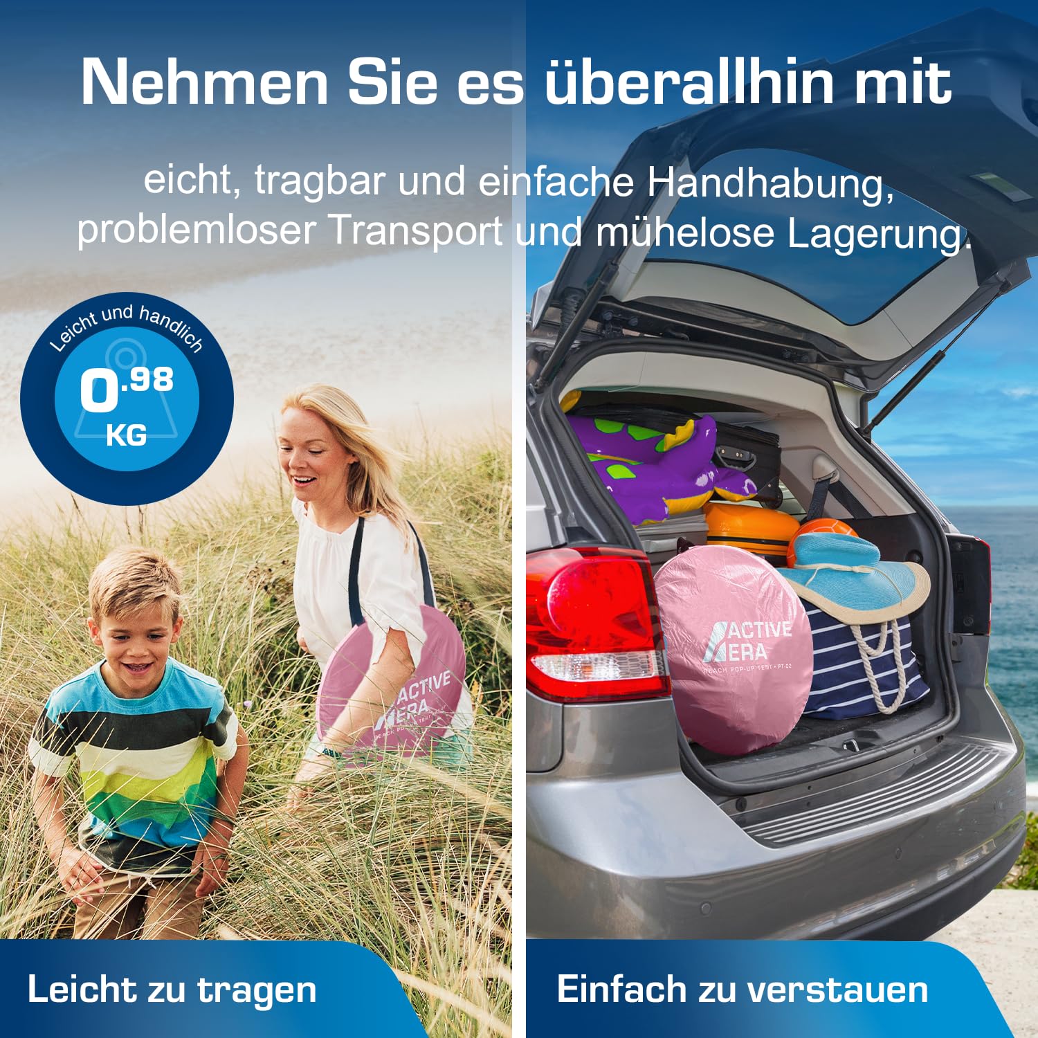 "Pop Up Tent: Forget confusing tent instructions. Thanks to Active Era's Easy Pitch Pop-Up Technology, you can set up the beach shelter in seconds. The included step-by-step guide for dismantling also shows you how to pack away the tent quickly and easily."