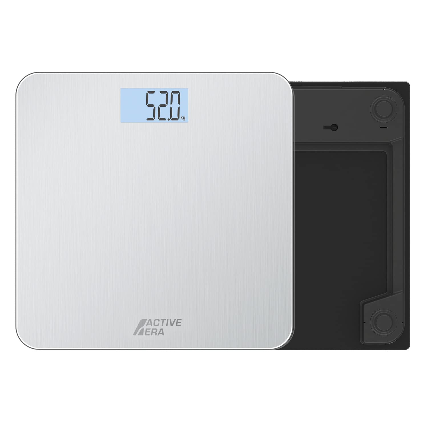 ACTIVE ERA Ultra-Slim Digital Body Weight Scale with precise accuracy and Step-On Technology - Scale made of safety glass and with large LCD display - Steel