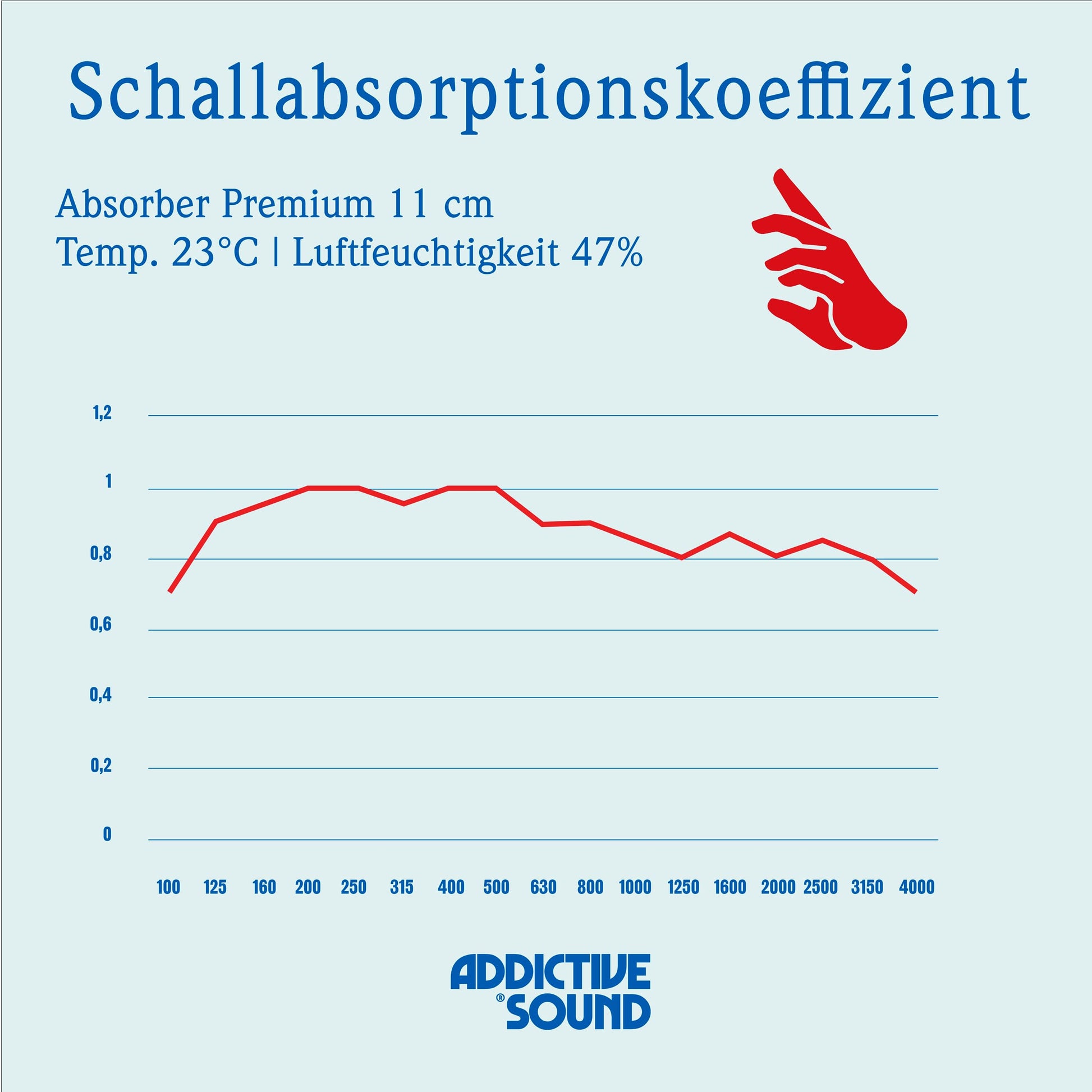 "VERY HIGH SOUND ABSORPTION COEFFICIENT - The broadband premium absorber (39.4x19.7x4.3 inches) absorbs sound excellently, including low frequencies (Class A). It uses the best available acoustic wool with a density of ~80kg/m3, tailored to the size of the panel. The absorbing material (acoustic wool) has a non-combustibility Class A1 and a hygiene certificate.