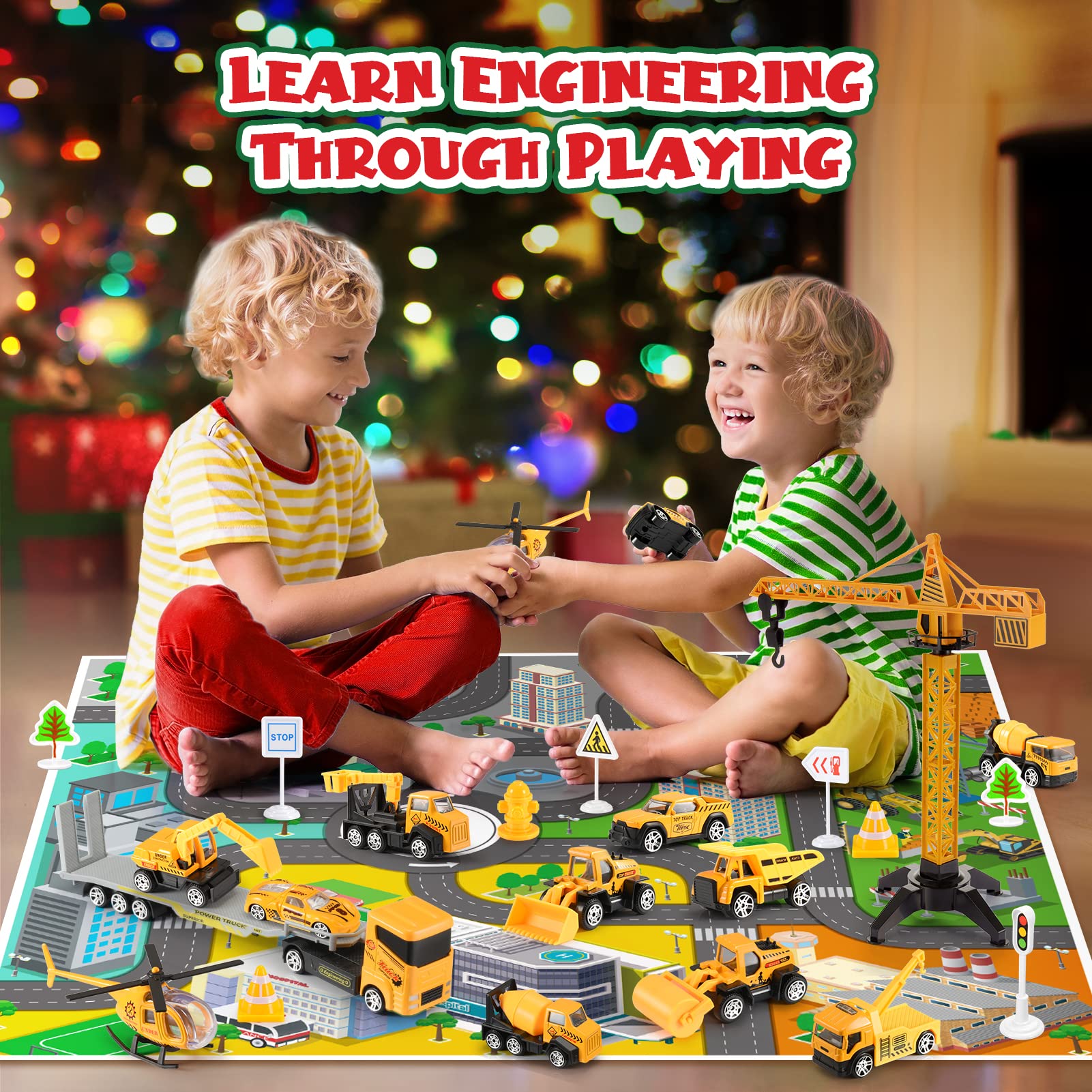 ["Educational Toy"] The car Advent calendar toy includes 14 different vehicles and 12 different construction accessories, all with real functions and realistic colors. Children can explore, discover, and learn a lot about construction vehicles in the real construction world, play different roles, and interact with children at parties, promoting emotions, vision, gripping ability, senses, intellectual development, brain and hand-eye coordination in children.