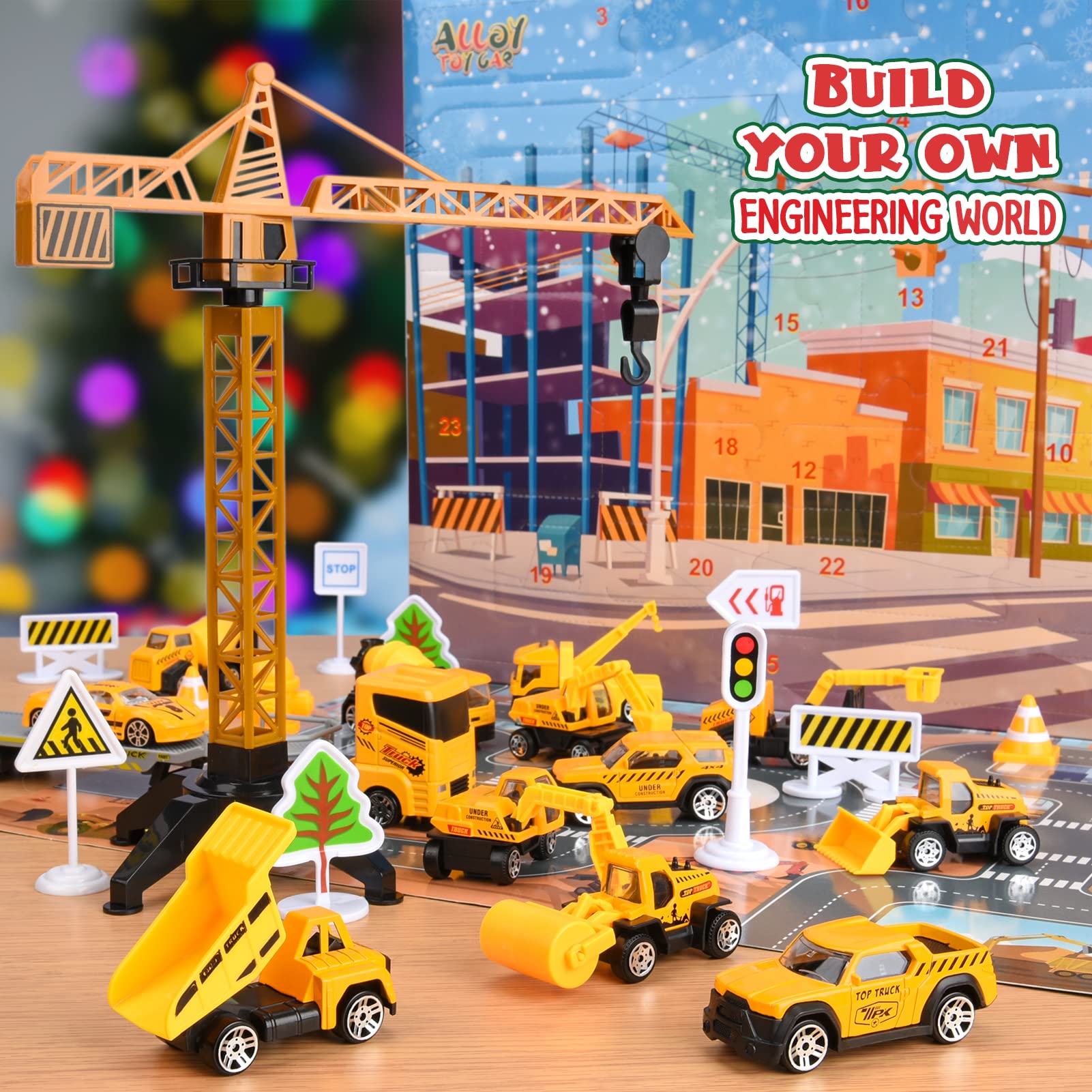 ["Safe and High Quality"] The product is made of non-toxic alloy material, which is strong and wear-resistant, durable, not easy to damage, and has a long service life. We have designed the amazing Advent calendar toy car for children to provide an exciting Advent calendar alternative. Which boy wouldn't be delighted with a construction vehicle?