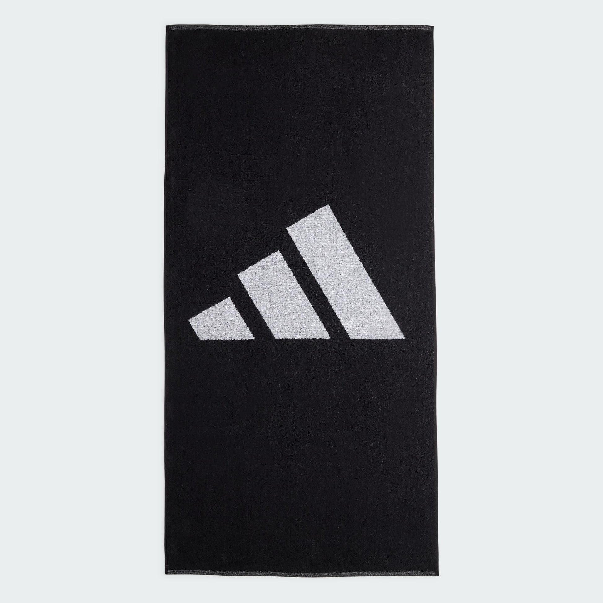 ["Dimensions: 27.6 inches x 55.1 inches", "100% Cotton (Terry cloth)", "Hanging loop on the short side", "3-Stripes logo"]