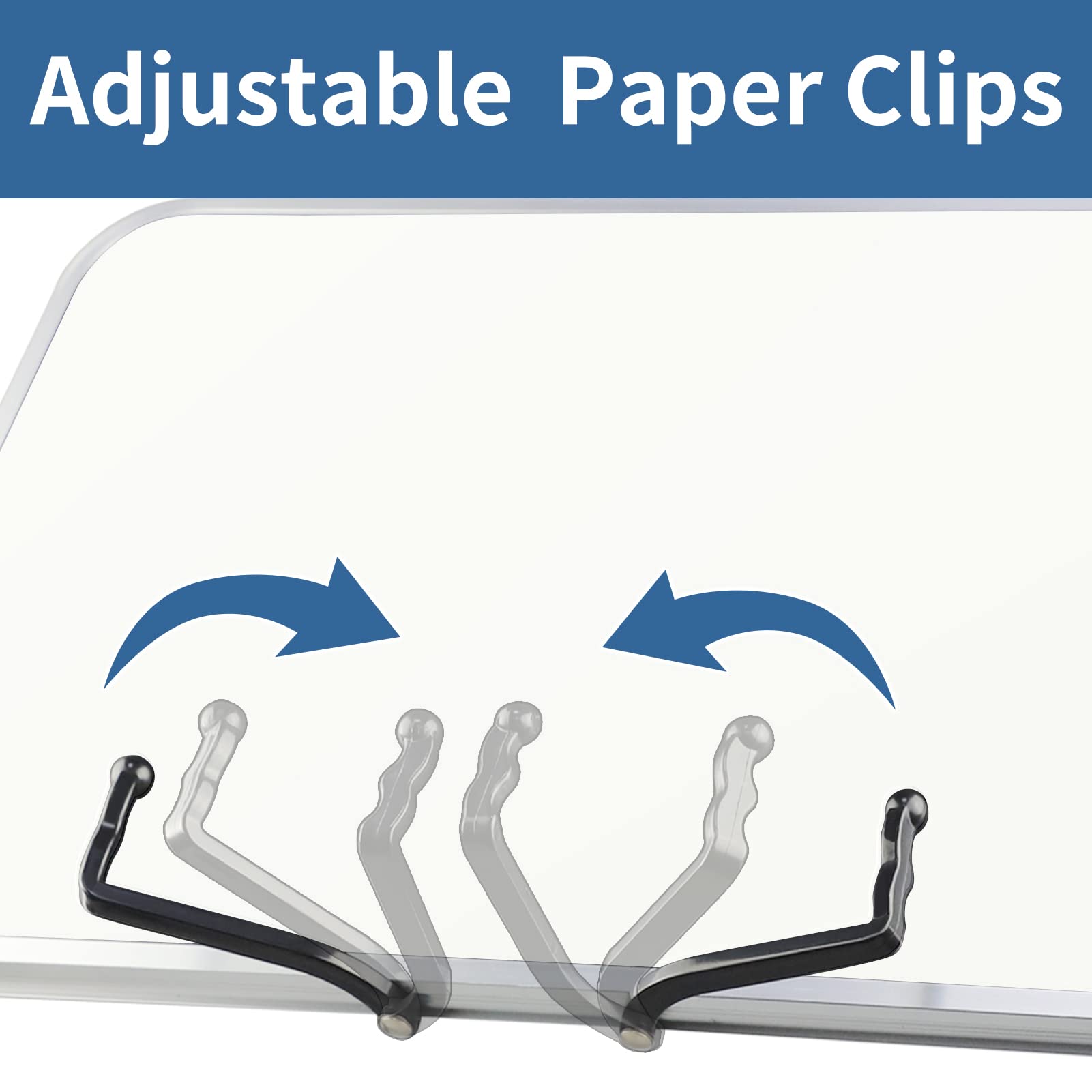 Adjustable Ergonomic Book Stand with Office Clips for textbooks, music books, tablets, notebooks, recipe books, and more.
