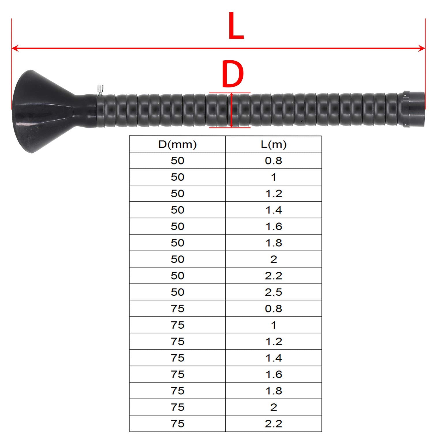 Adjustable extraction arm for solder fume extraction - for dust, fumes, and welding smoke - outer diameter 50-75mm - length 0.8-2.5m (outer diameter 50mm, length 1.6m)