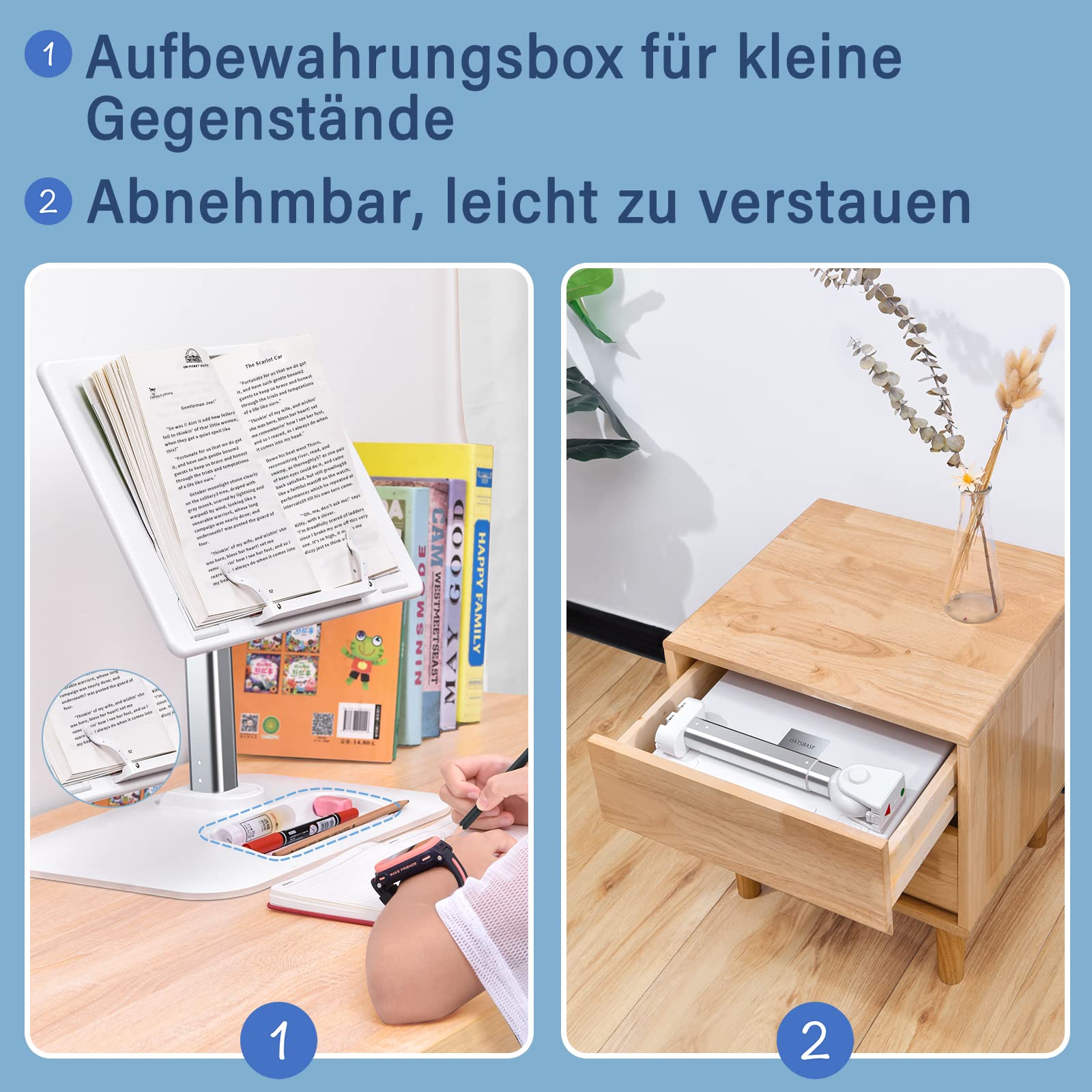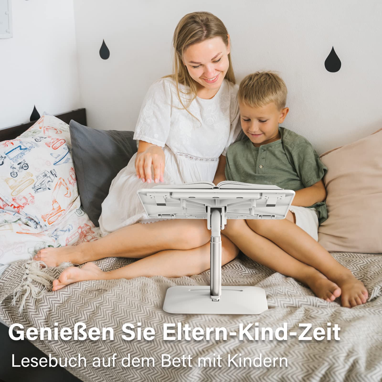 ["【Adjustable Height】The height of the laptop stand can be adjusted from 10.2in(260mm) to 21.6in(550mm). As a laptop stand for desk, you can always find a comfortable height through it, whether you are sitting or standing.","【Ergonomic Design】This laptop stand for desk can also adjust the angle of the top. By pressing the button on the side, the angle can be adjusted from 0 to 60 degrees, which is in line with ergonomic design and easy to use. It can also help reduce the discomfort of the lumbar spine and cervical spine caused by incorrect posture when using a laptop.","【Removable & Portable】The portable laptop stand can be easily disassembled and stored in a backpack. The top panel could also be used as a laptop stand or book stand alone.","【Hands-Free】The design of the book clip and guards could free your hands and allow you to do other things at the same time. The book or laptop would be stable and not fall.","【Wonderful Gift】This laptop holder is multifunctional. It could be used as a laptop stand, MacBook stand, or book stand. It should be a wonderful gift for family, children, or friends."]