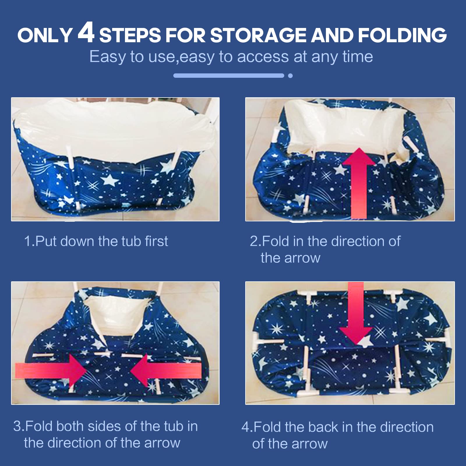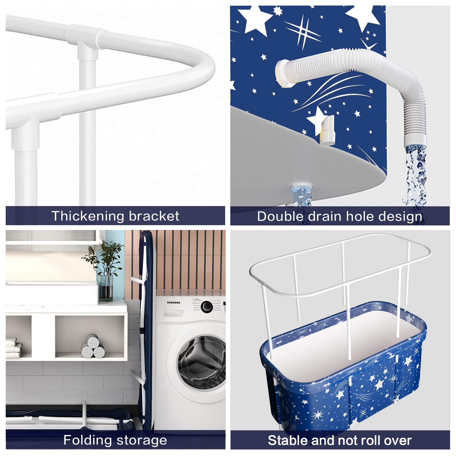 Freestanding bathtub: The foldable adult bathtub offers plenty of space to enjoy a bath with children. Easy to clean after use, it can be easily emptied by simply opening the tap and drain. Six sturdy support rods provide stability during ice baths.