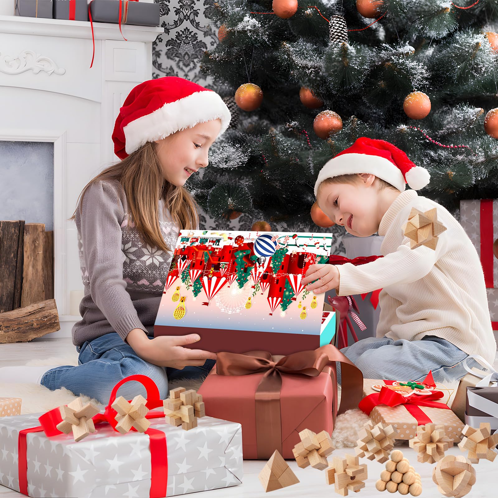 Advent Calendar 2024 Puzzle, 24 Day Christmas Countdown Calendar Puzzle with Metal Brain Teaser for Kids and Adults Challenge (Wooden)