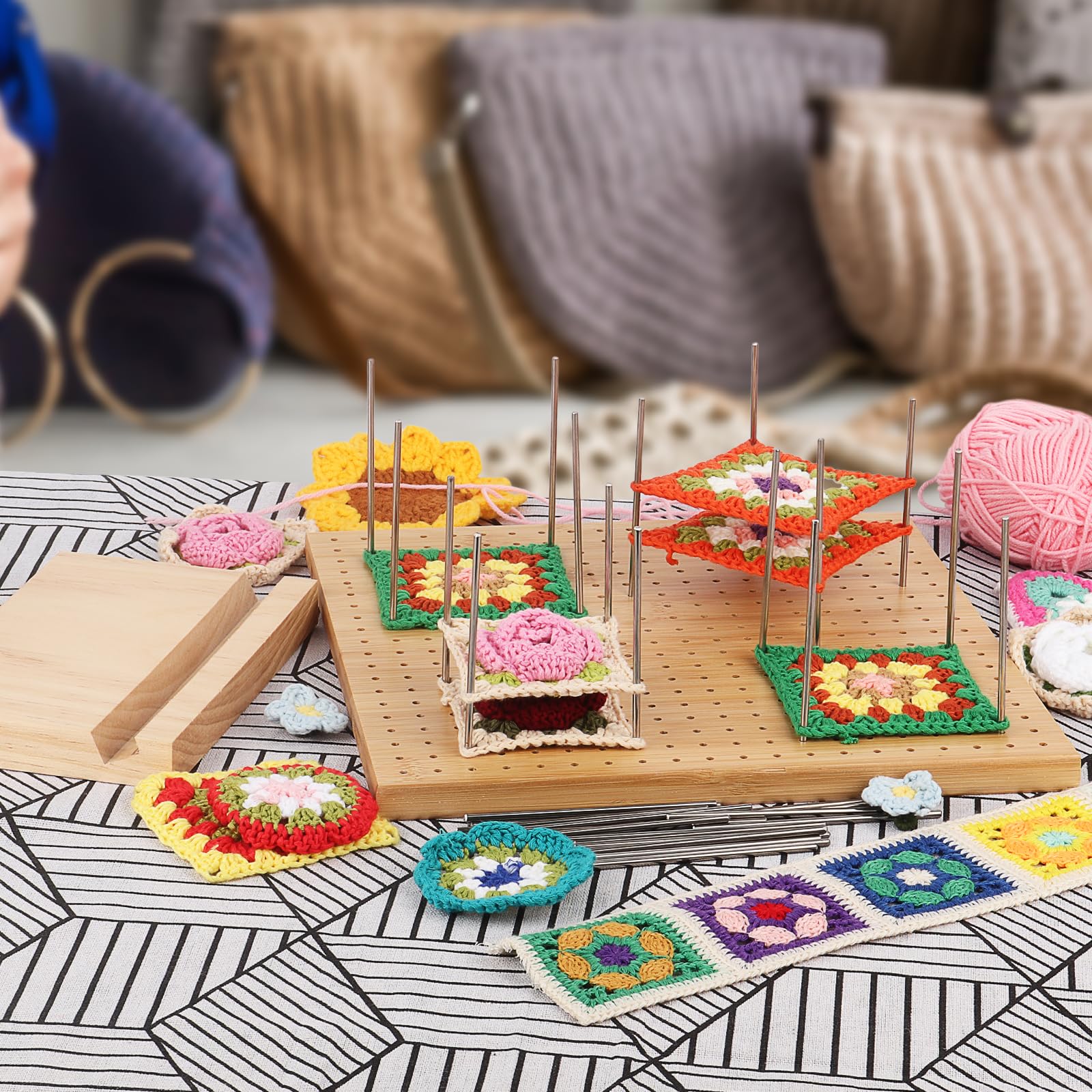 ["Bamboo Granny Square Blocking Board] - This blocking board for granny squares is made of high-quality wood, and the sturdy blocking board can stretch unruly fabrics like no other. The natural texture of the board makes it very beautiful. The blocking board has been polished multiple times, and the surface is smooth and free of burrs, so you don't have to worry about hand injuries. The touch is exquisite, odorless, easy to use, fully functional, and easy to use.