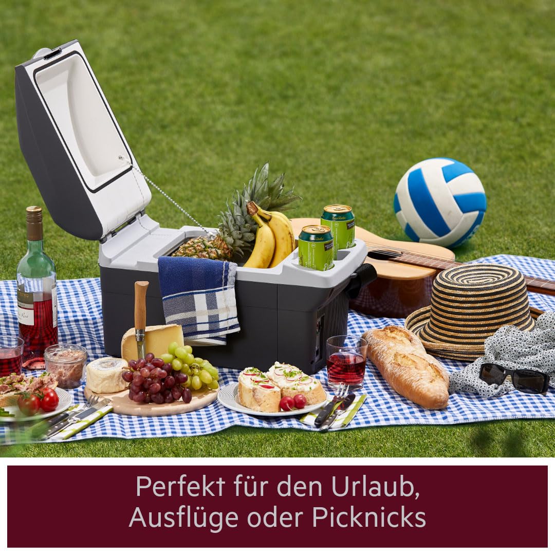 ["Thermoelectric cool and warm box", "Great for on the go with comfortable armrest and drink holder, with convenient carry strap", "Cooling up to 18-20 °C (below ambient temperature)", "Heating function up to 149 °F", "No cooling packs required"]